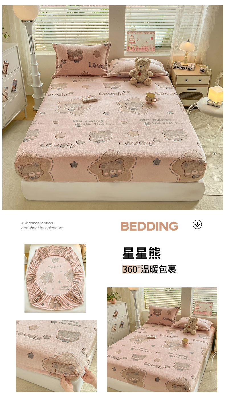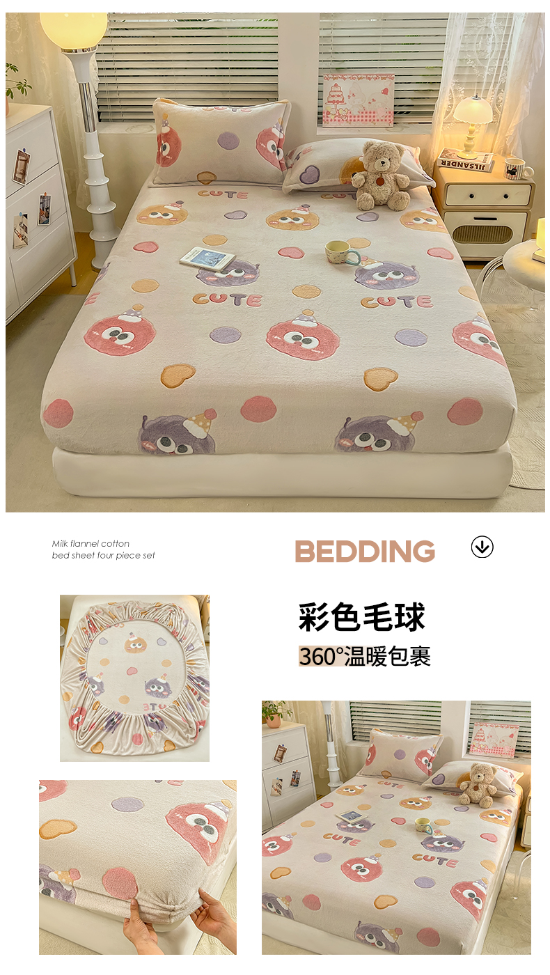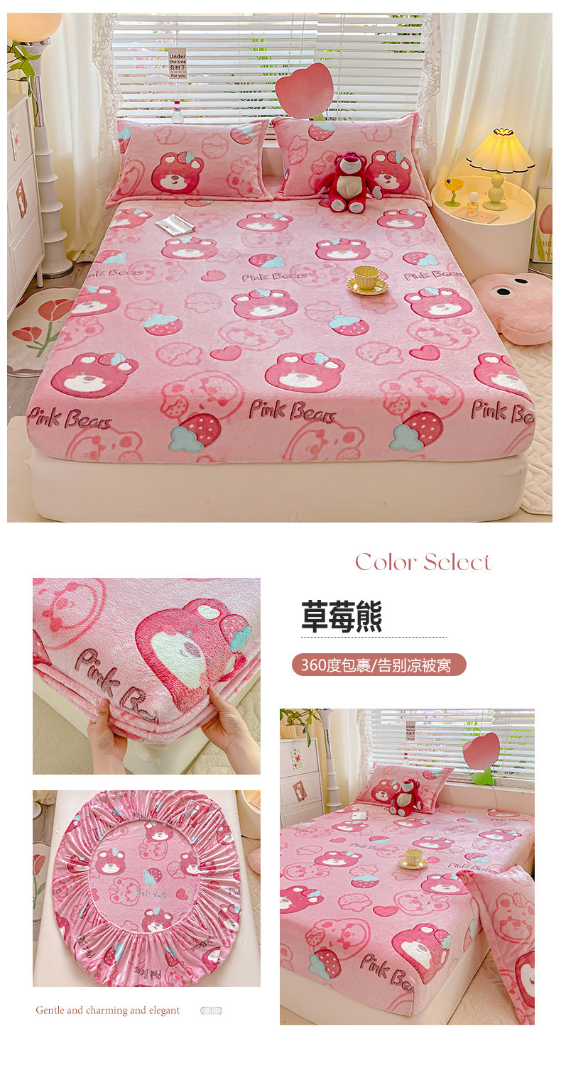 (总)热卖爆款·雪花绒卡通床笠牛奶绒保暖床垫保护套绒枕套外贸跨境直播电商