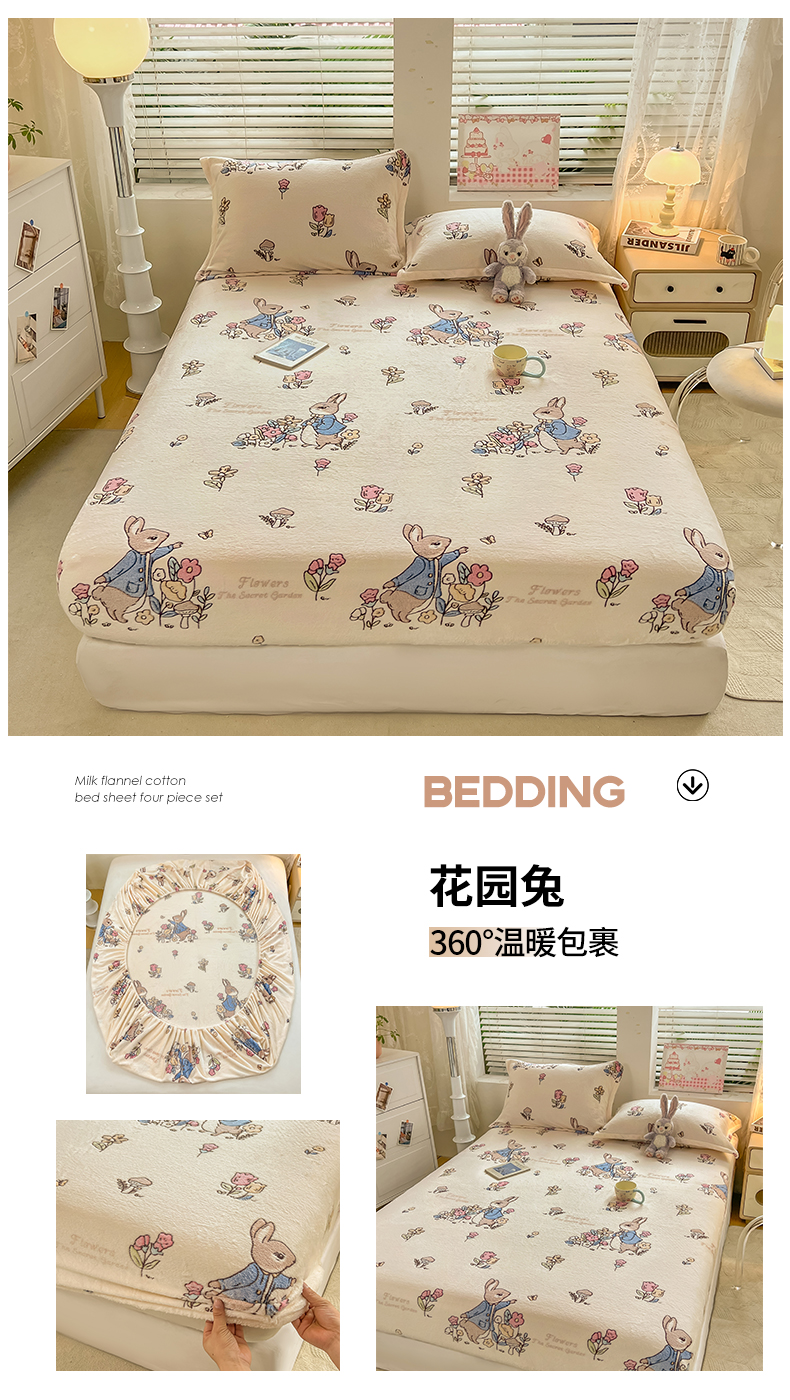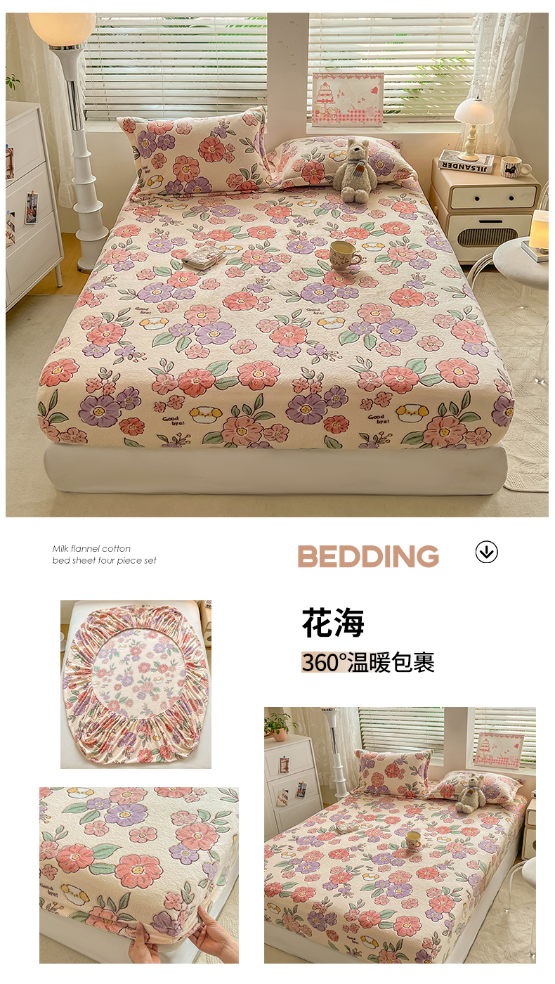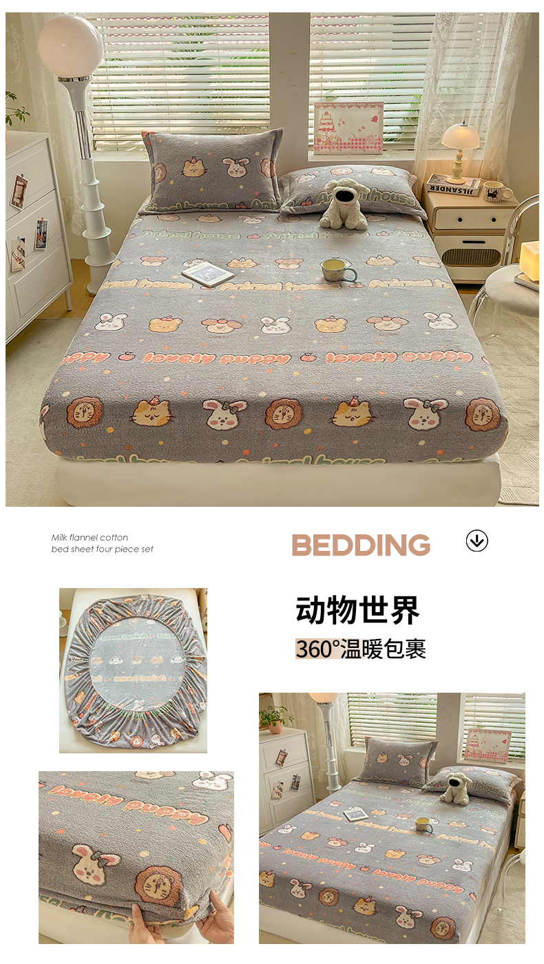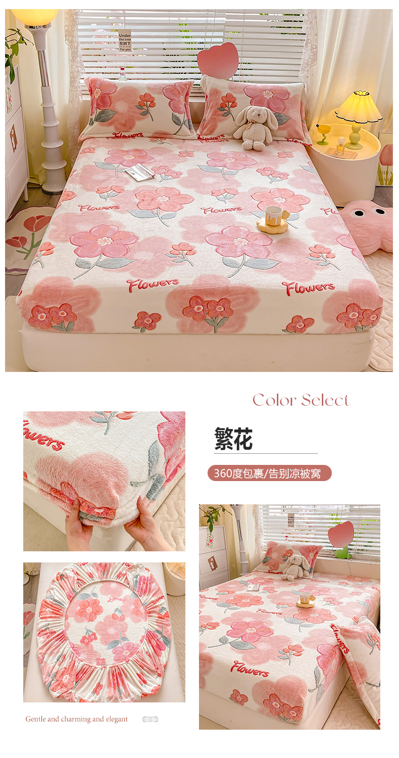 (总)热卖爆款·雪花绒卡通床笠牛奶绒保暖床垫保护套绒枕套外贸跨境直播电商
