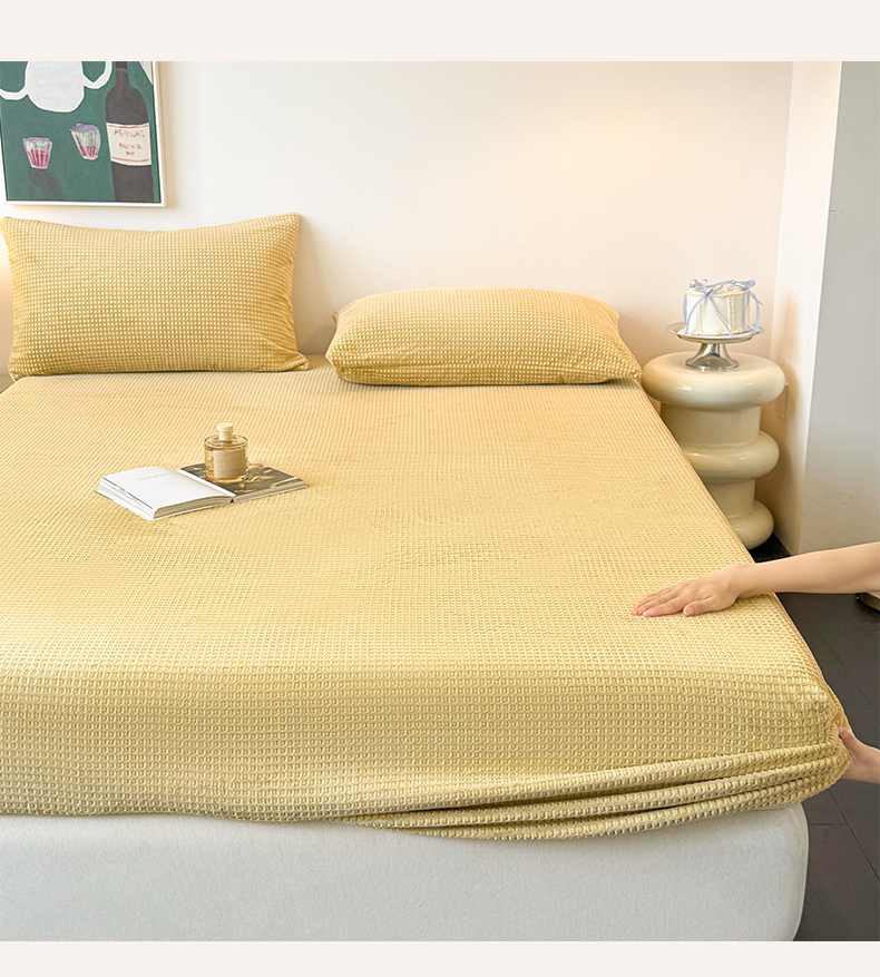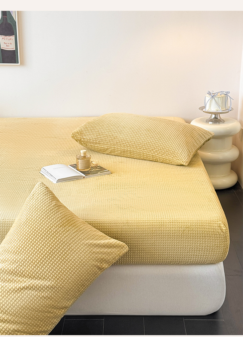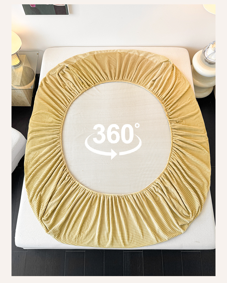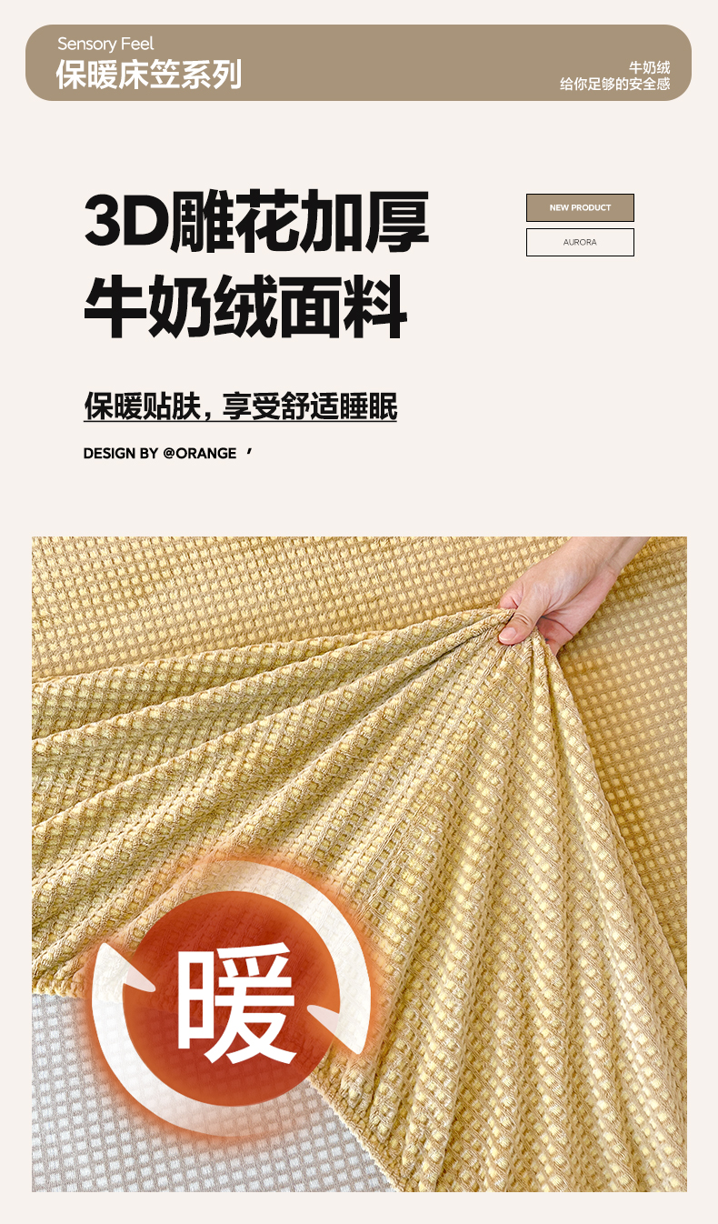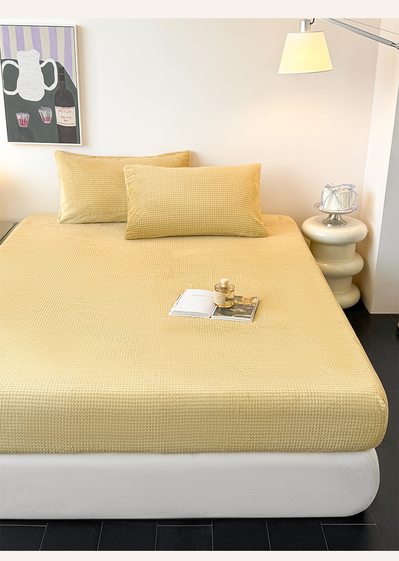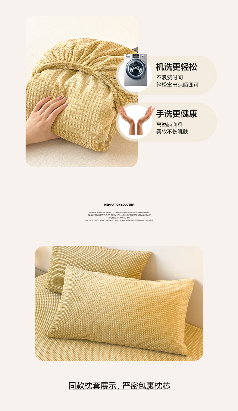 如一 2025新款全消光230克烂花牛奶绒马卡龙系列床笠枕套三件套 马卡龙-咖黄