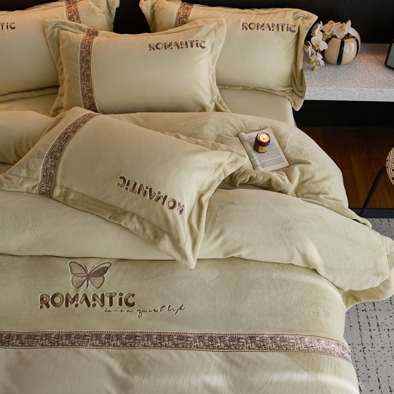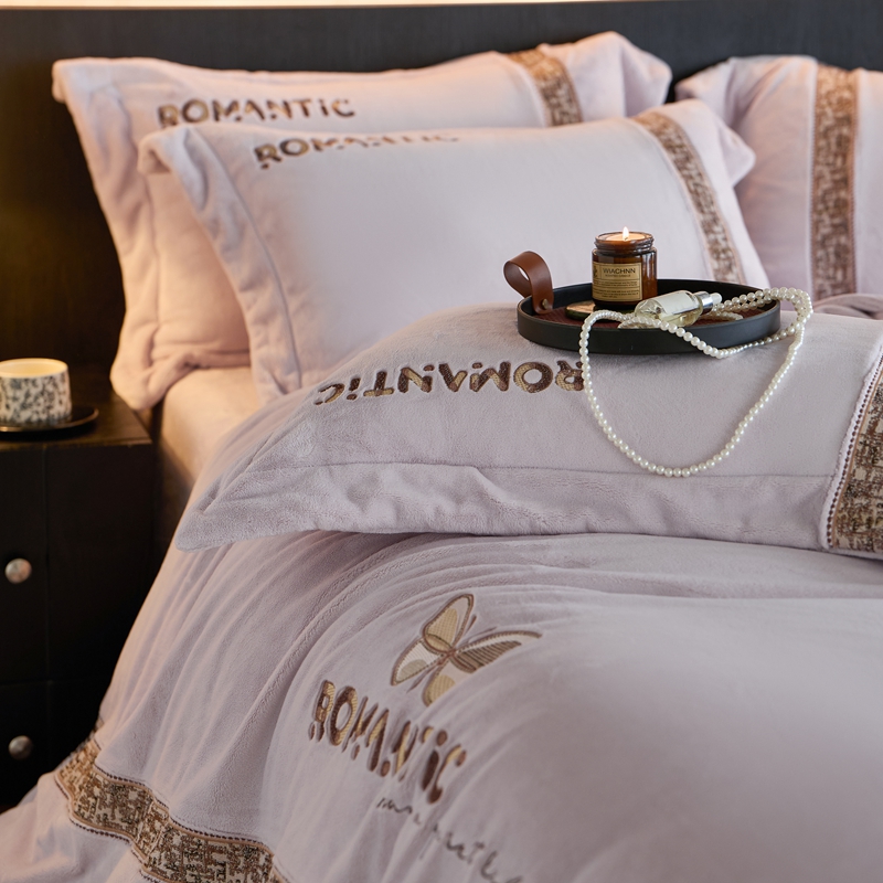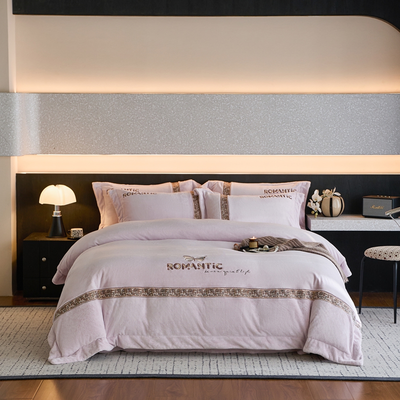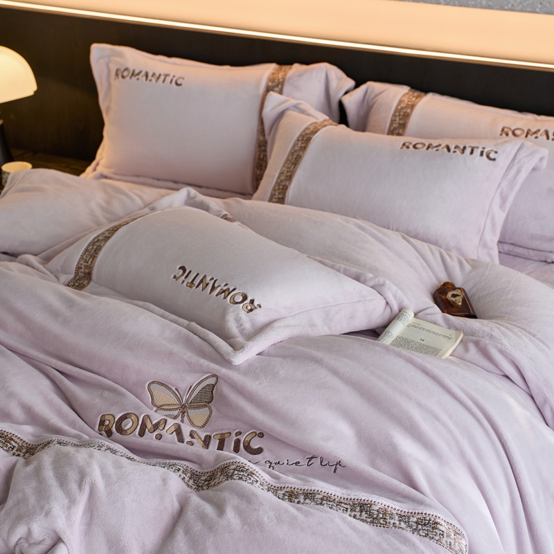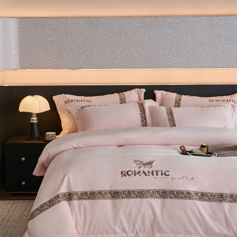 (总)瑞雪家居 2025新款270g全消光牛奶绒四件套-蔓蒂丝系列,贝壳粉,梦想粉,浅绿,浅紫,新米色