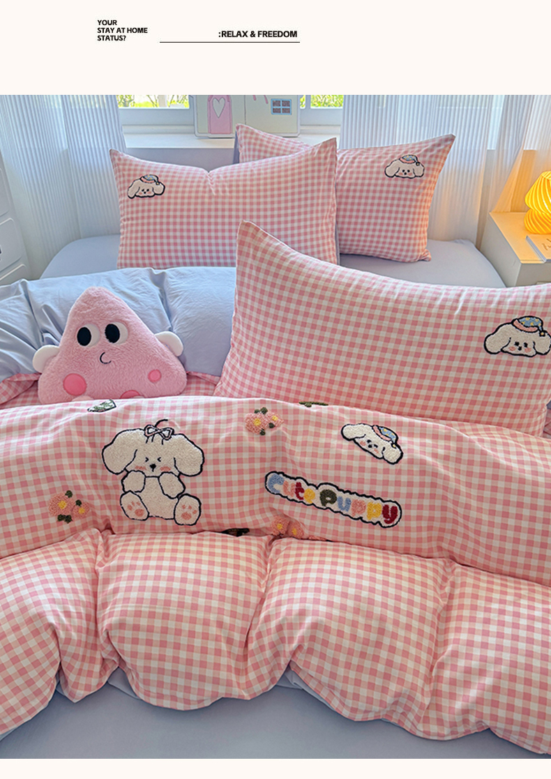 当前位置: 91家纺网 > 商品网购 > 床品套件 > 四件套 > 毛巾绣四件套 > 沃朴家居 2025新款萌趣水洗棉毛巾绣四件套 开心狗狗