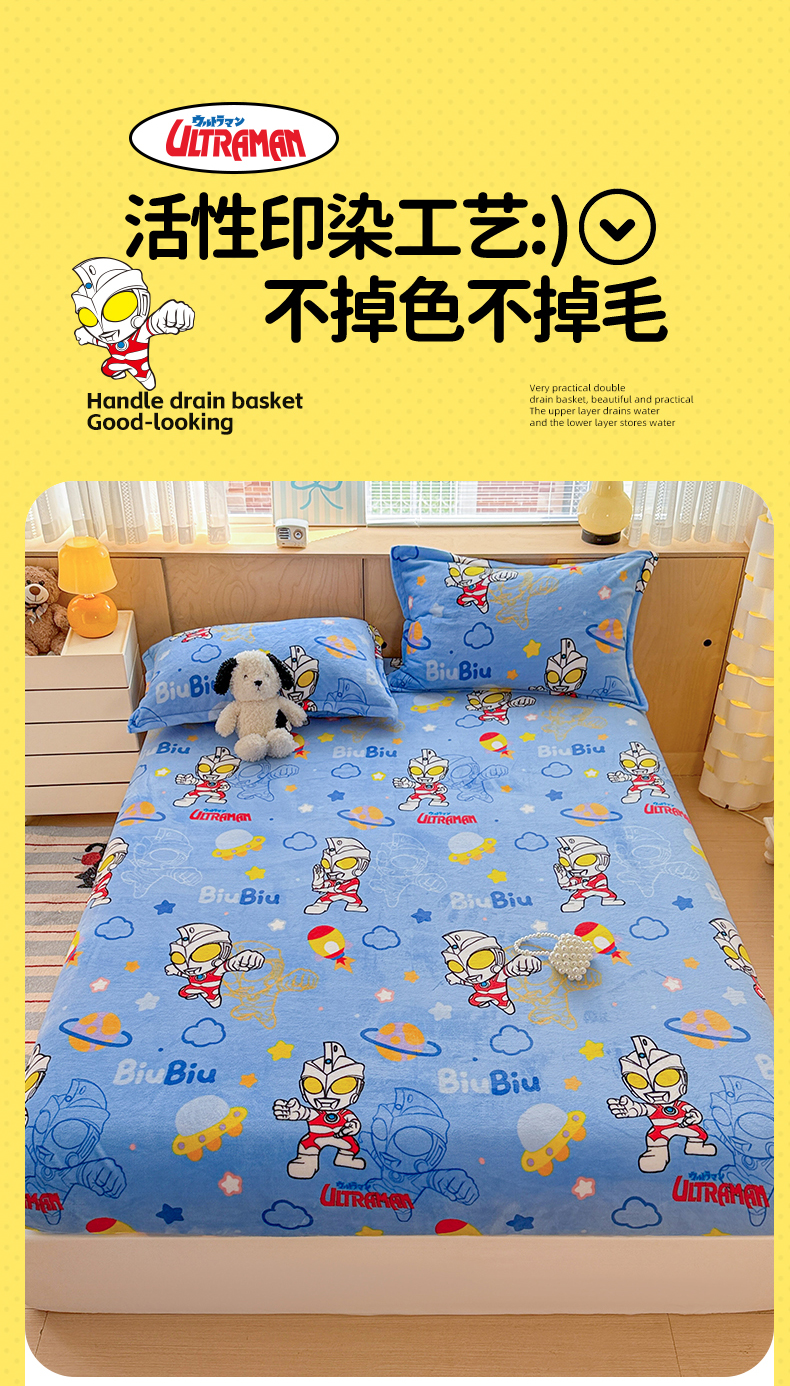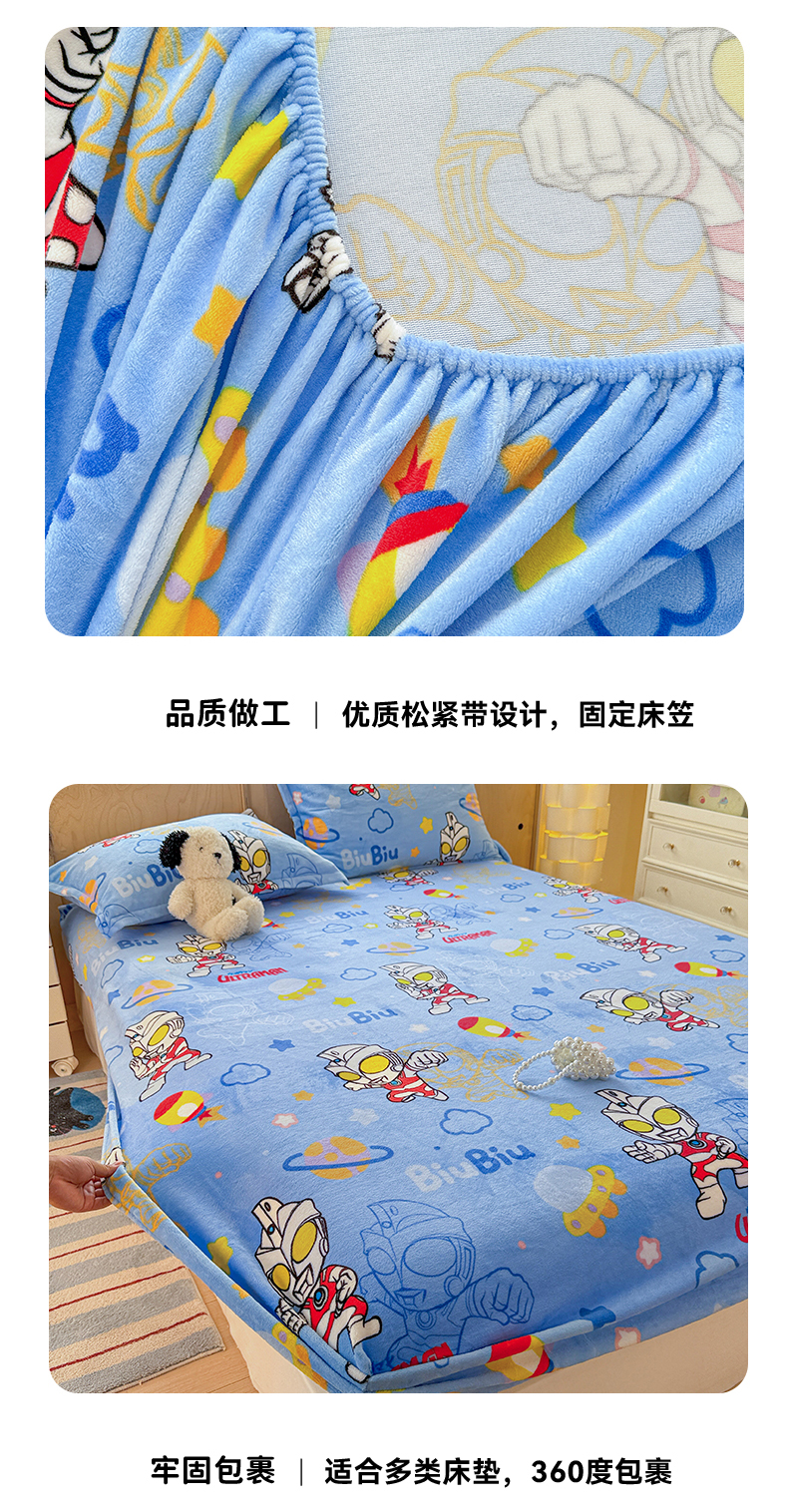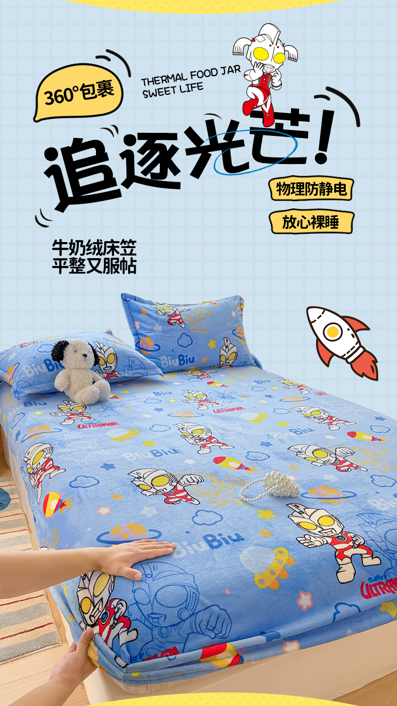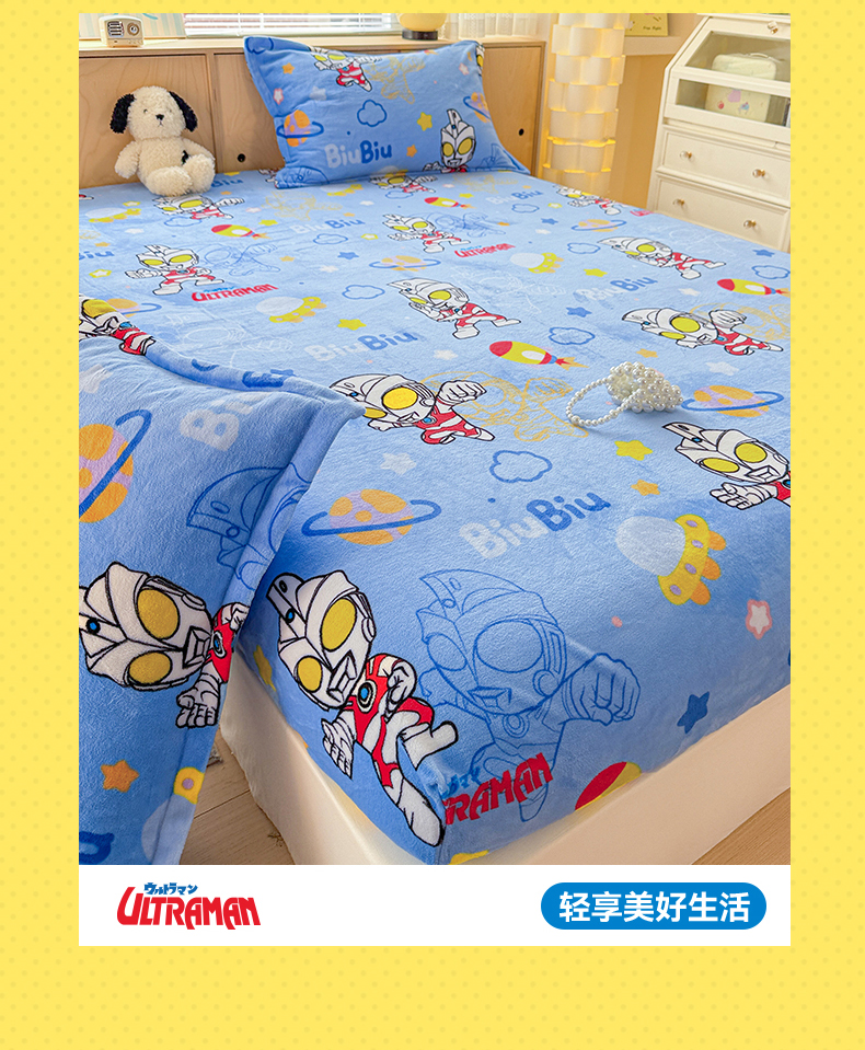 • 91家纺网 家纺一手货源 找家纺 名兮-2025经典奥特曼-三丽鸥高克重印花牛奶绒床笠 闪电艾斯