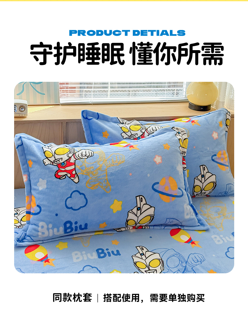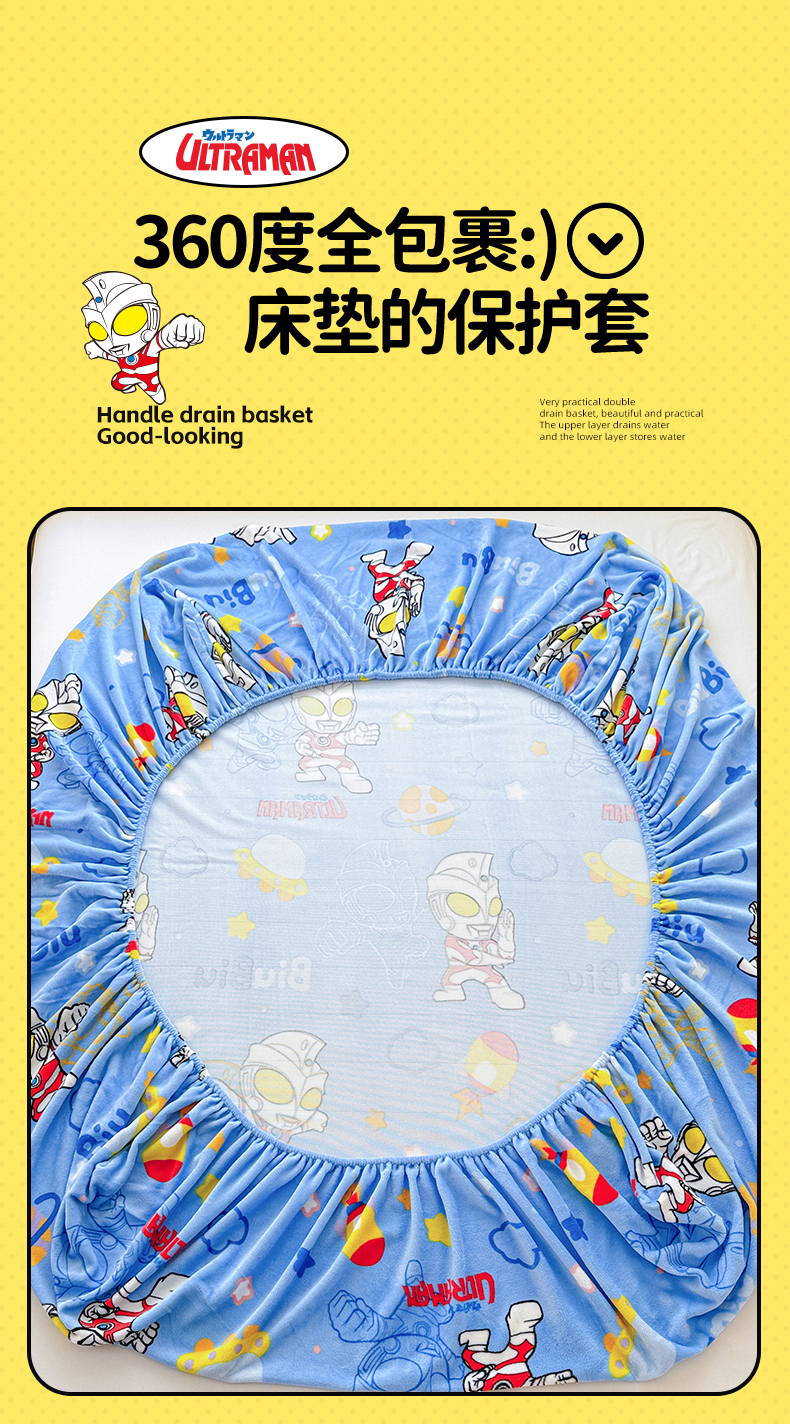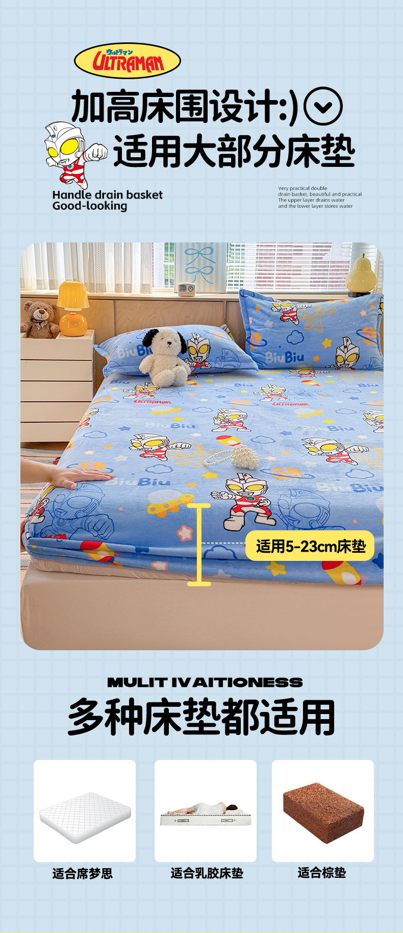• 91家纺网 家纺一手货源 找家纺 名兮-2025经典奥特曼-三丽鸥高克重印花牛奶绒床笠 闪电艾斯