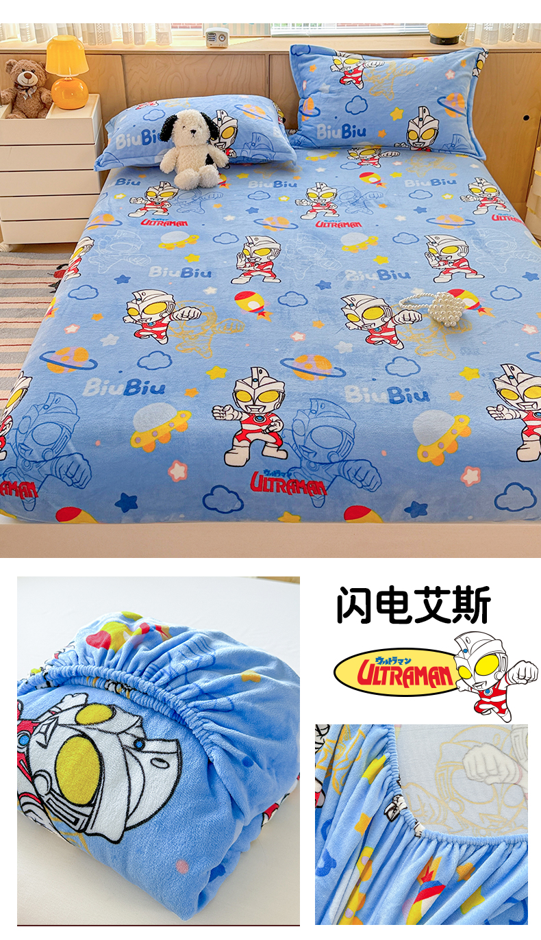 名兮-2025经典奥特曼-三丽鸥高克重印花牛奶绒床笠 闪电艾斯