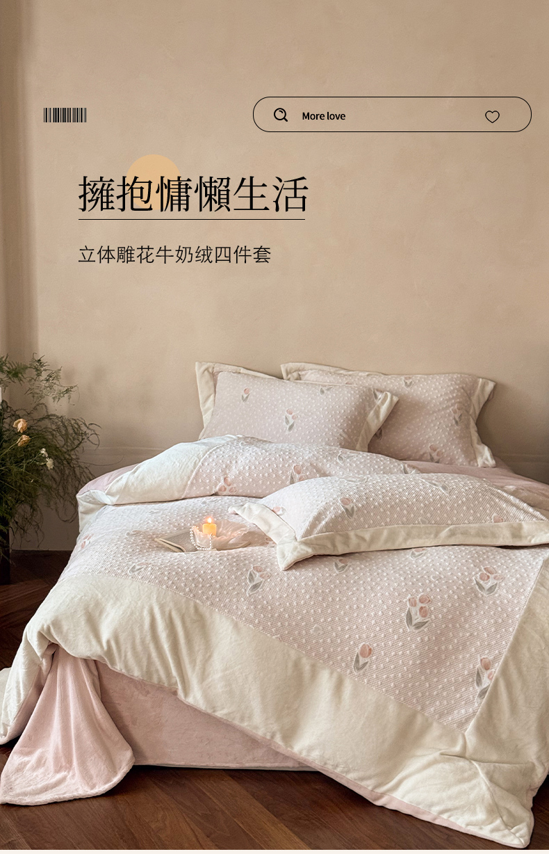 云栖家居 2025秋冬消光加厚立体雕花牛奶绒四件套系列-元英系列(控价不低于199) 郁金香-粉