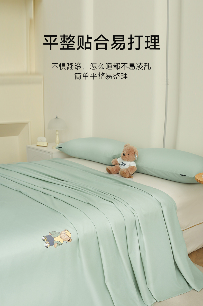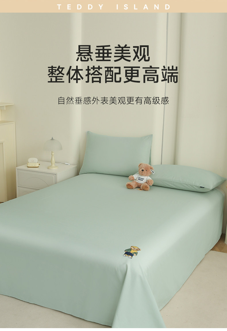 泰迪爱兰Teddy ISLAND 2026新款全棉40S单品刺绣床单 抹茶绿