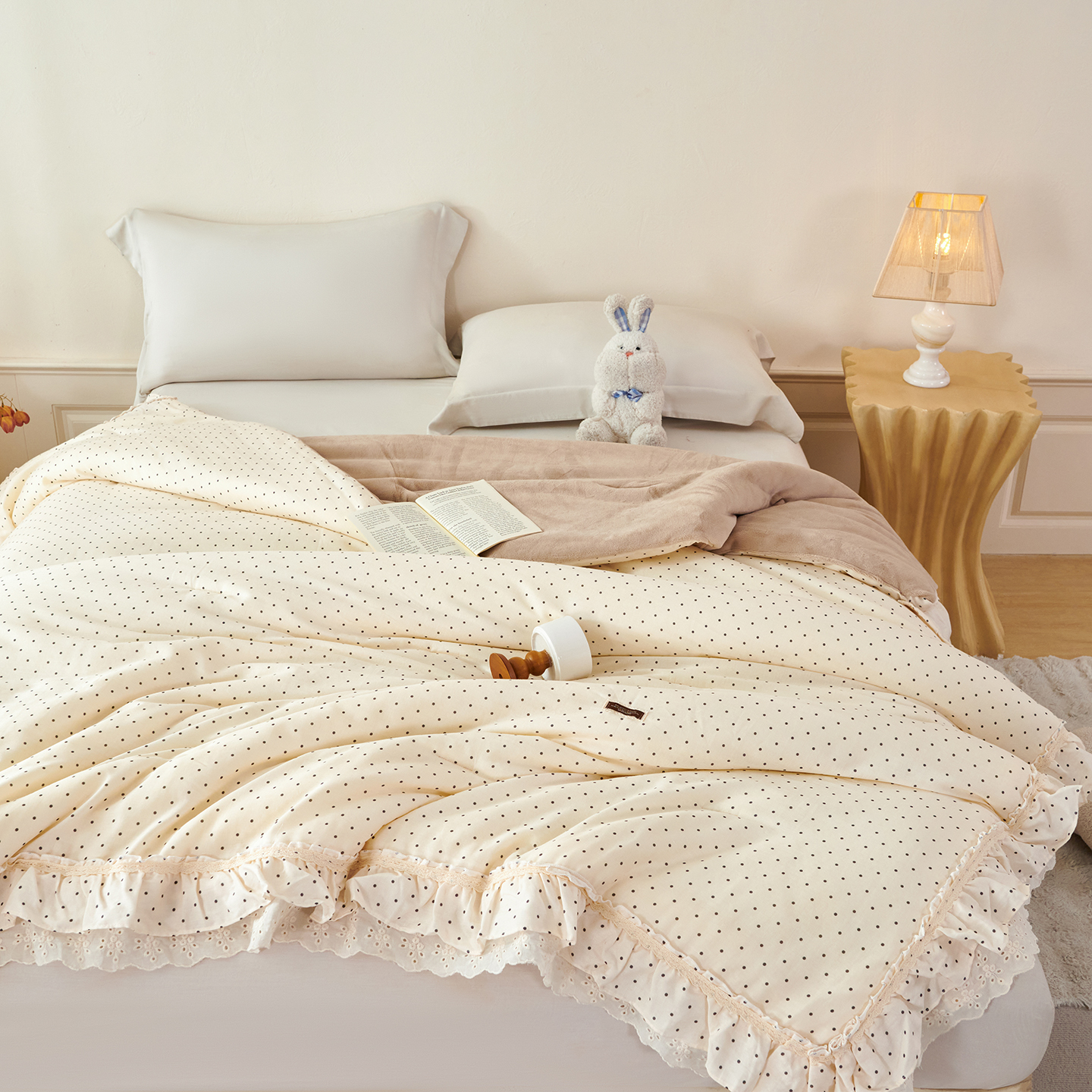 (总)优希家纺 2025新款米娅千金多功能春秋被四件套,米白色,粉色,卡其,绿色