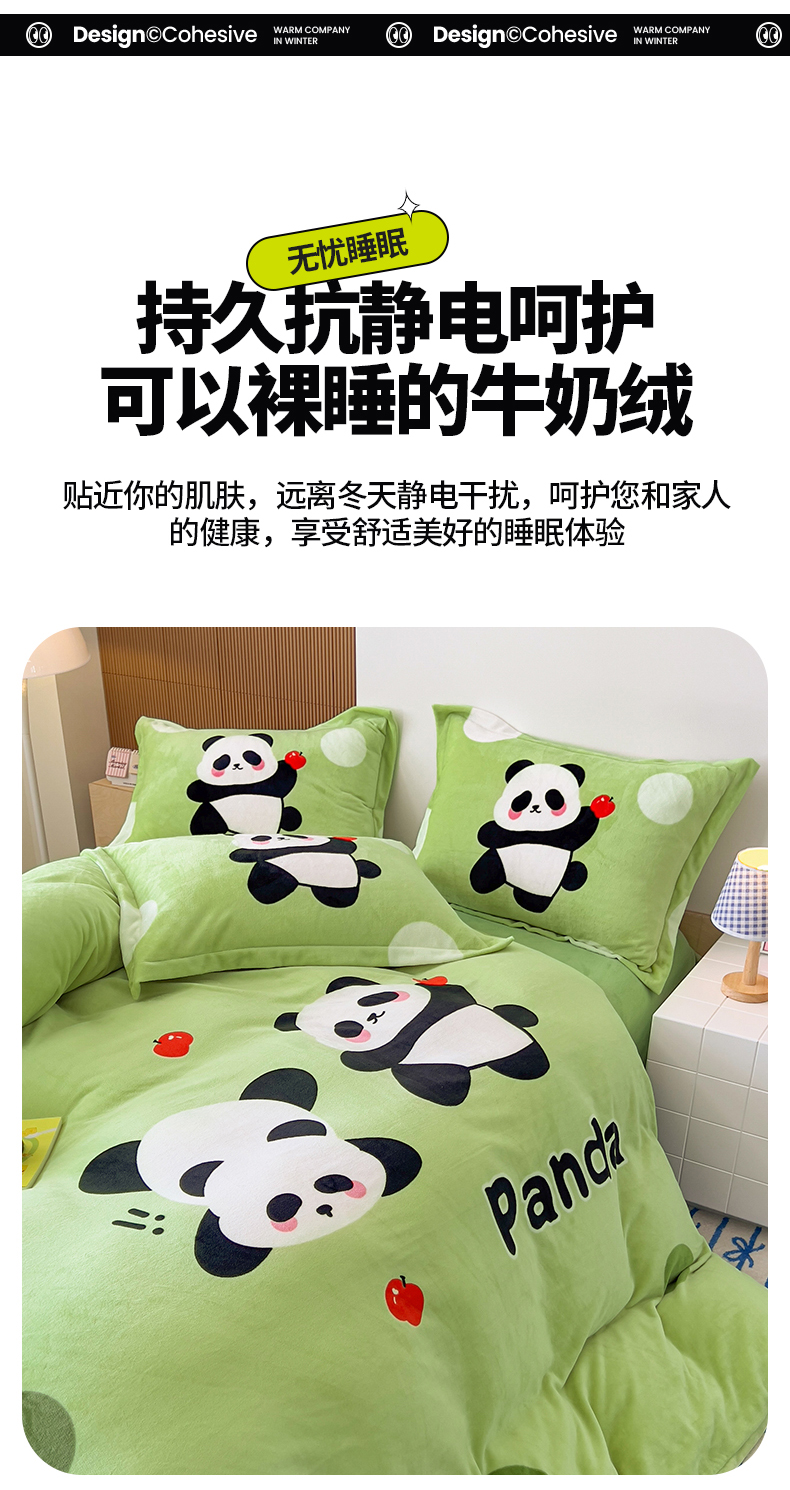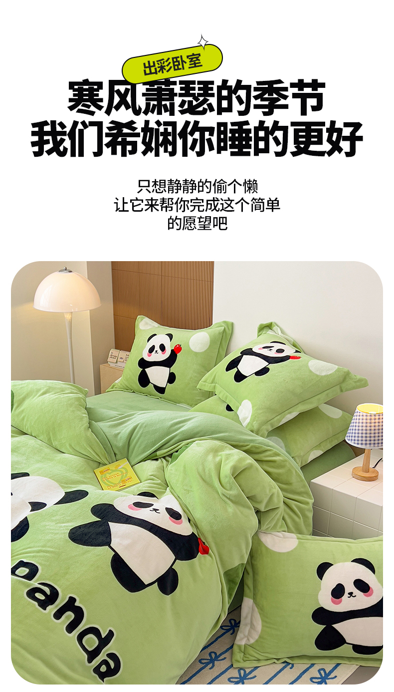 当前位置: 91家纺网 > 商品网购 > 床品套件 > 四件套 > 其它四件套 > 慕晨 2025新款卡通可爱大版印花牛奶绒加厚保暖小清新四件套直播 熊猫乐园