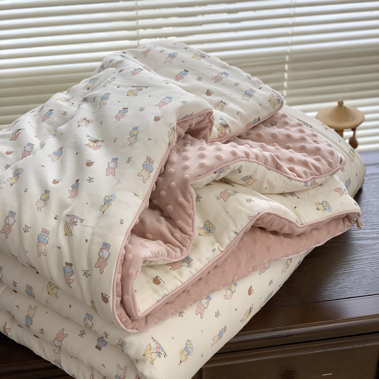 商品名称:源启生活 2025新款全棉双层纱豆豆被被子被芯 粉粉猫