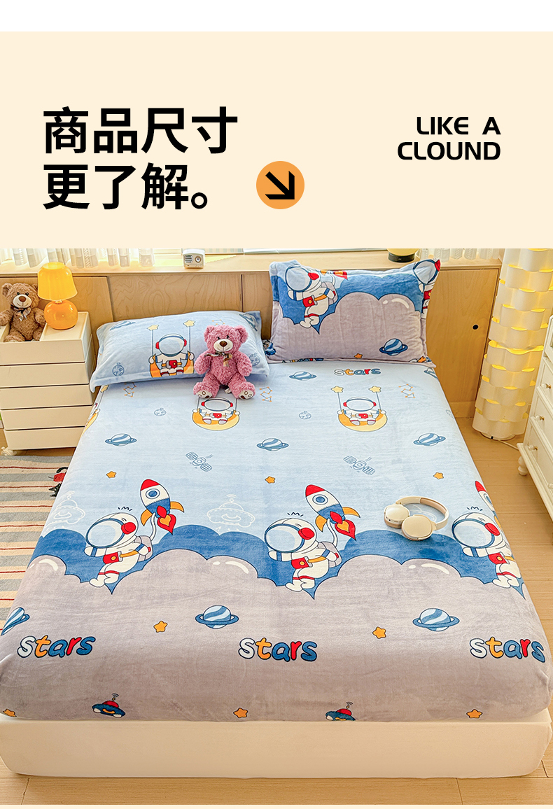 商品名称:(总)名兮家居 2025新款高克重印花牛奶绒单床笠床笠单件