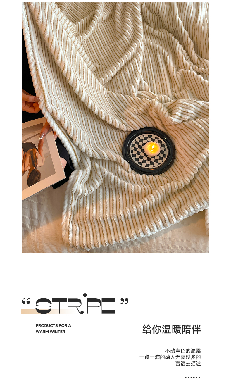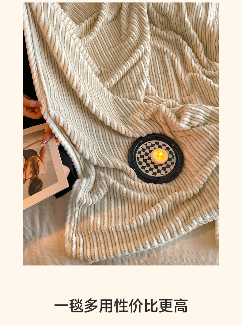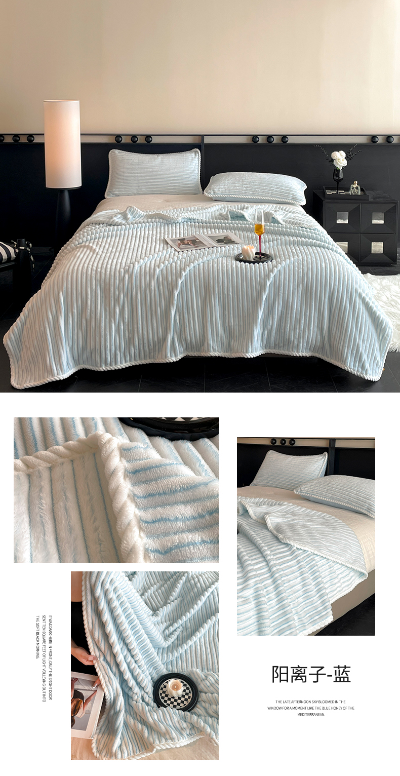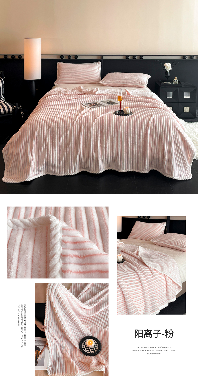 小叮当家纺仓储工厂店 2025新款亲肤舒适成品抽条阳离子毛毯毯子-阳离子 阳离子-黄