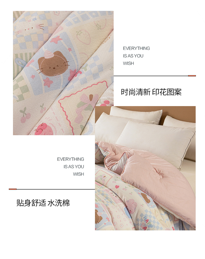 (总)买家秀热款花型不断货 母婴级A类ins风水洗棉四件套水洗棉毛巾绣四件套水洗棉床笠四件套提花绣花四件套,恐龙宝贝,花朵兔兔,面包小狗,奶油小甜甜,奶油芝士,兔伙伴,樱桃兔,优雅