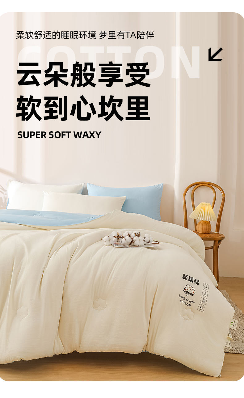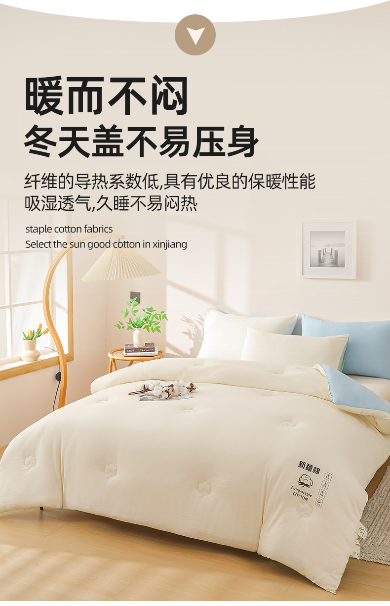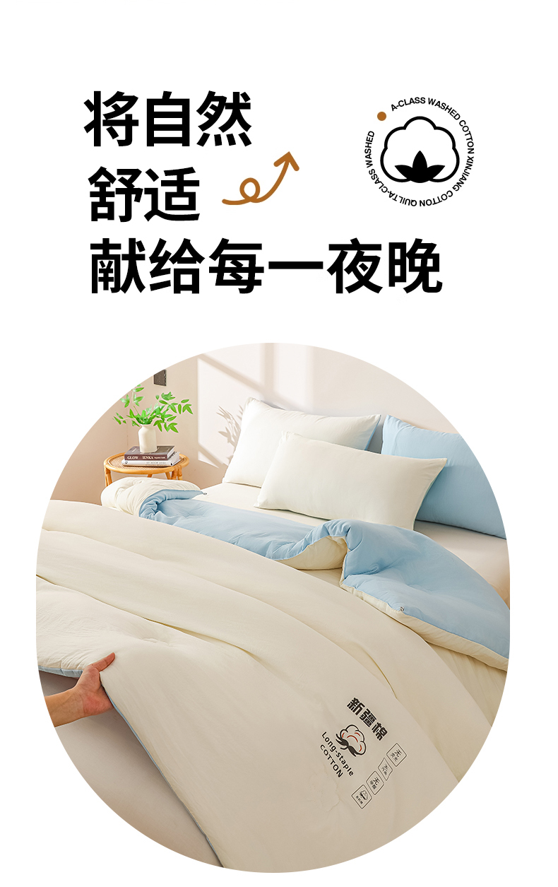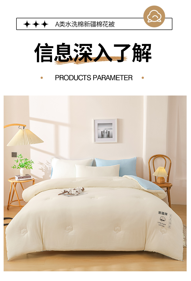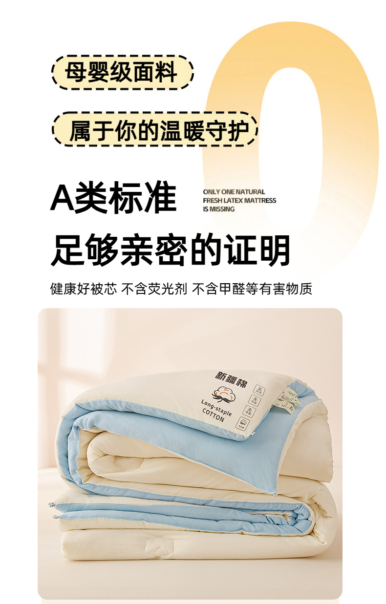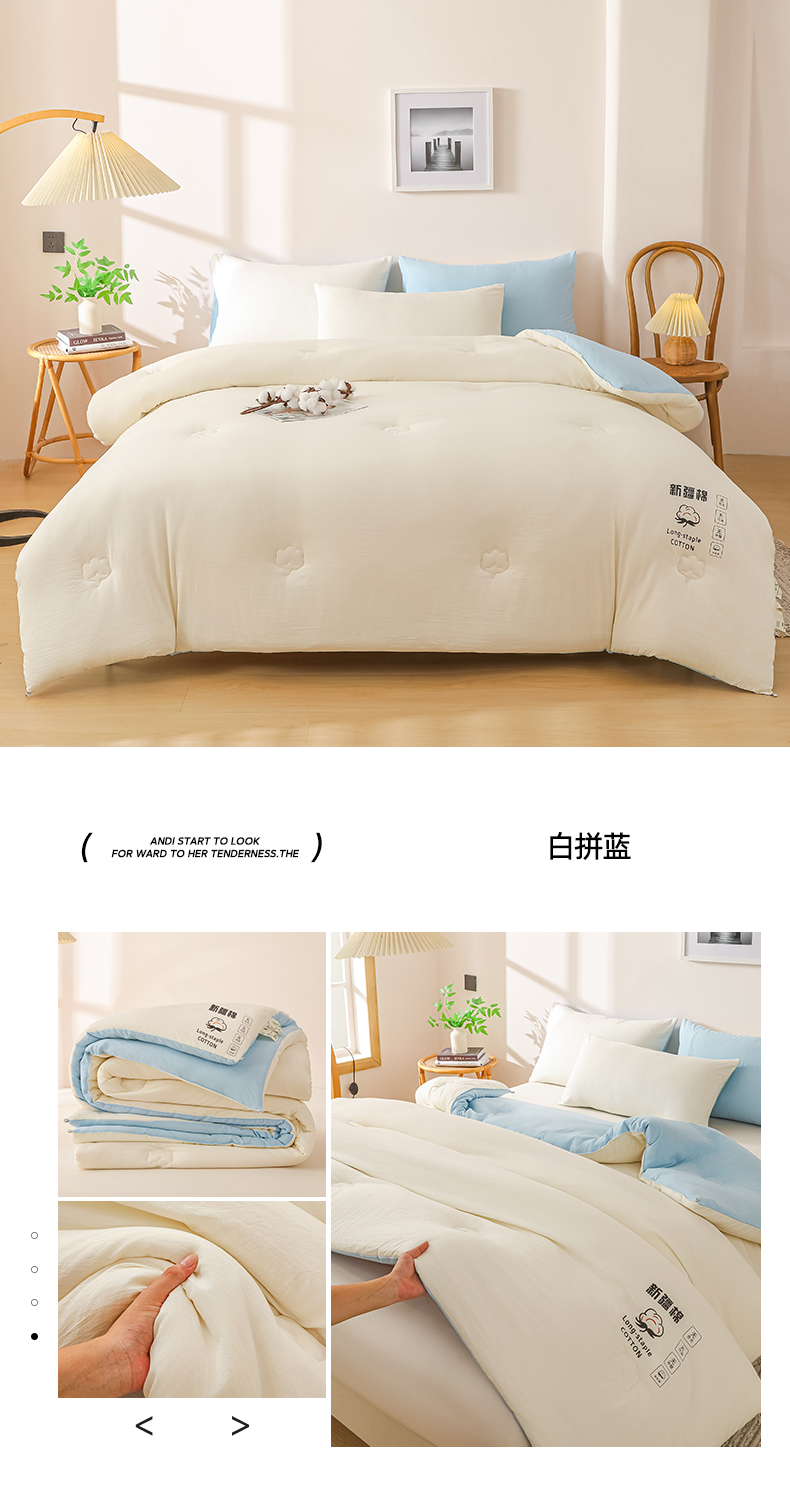 当前位置: 91家纺网 > 商品网购 > 被子 > 冬被 > 小叮当家纺仓储工厂店 2025新款A类水洗棉新疆棉花全棉纯棉被无印风冬被加厚保暖被子被芯四季通用 新疆棉花被-白拼蓝