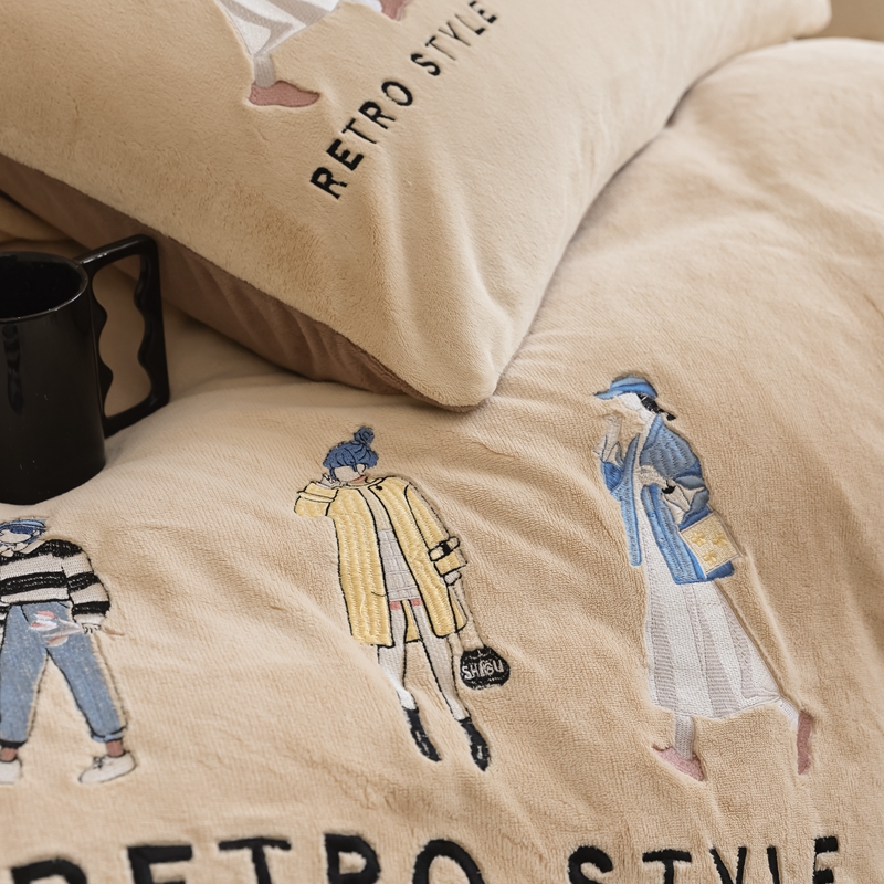 121【牛奶绒刺绣四件套】2025新款毛毯被子四件套单件床单被套床笠珊瑚绒牛奶绒冬被法兰绒兔毛绒刺绣男孩-Boy系列场景二 baby-棕咖