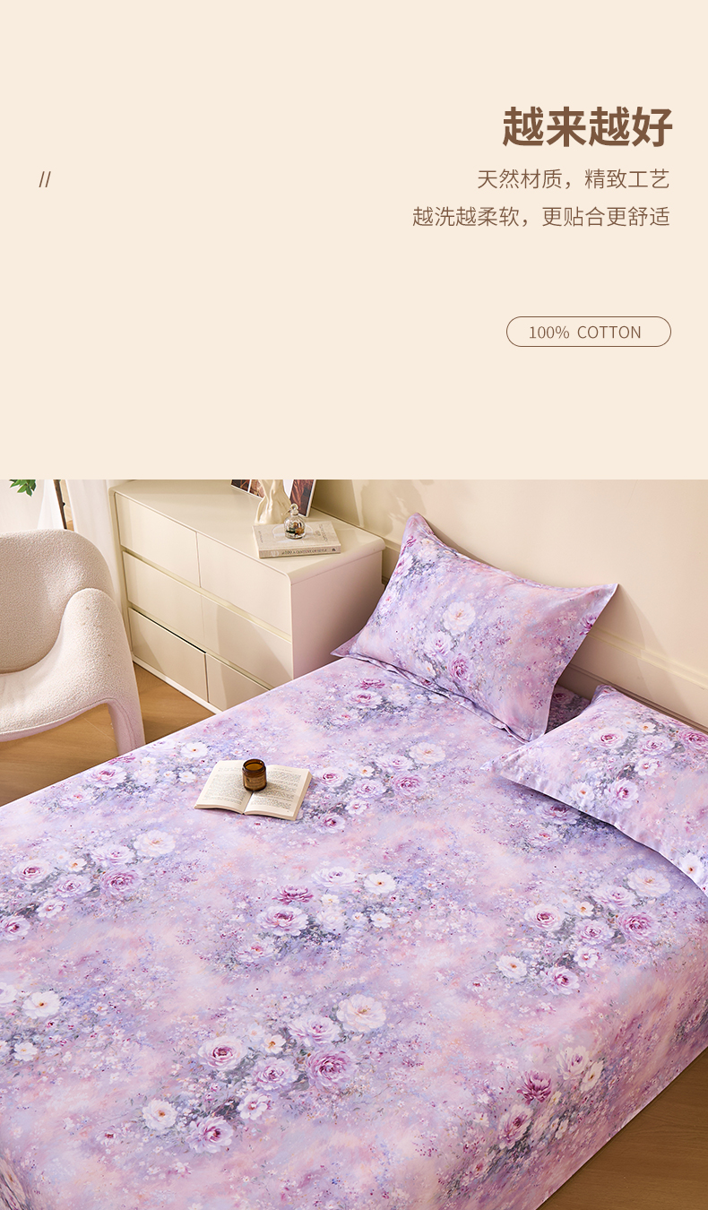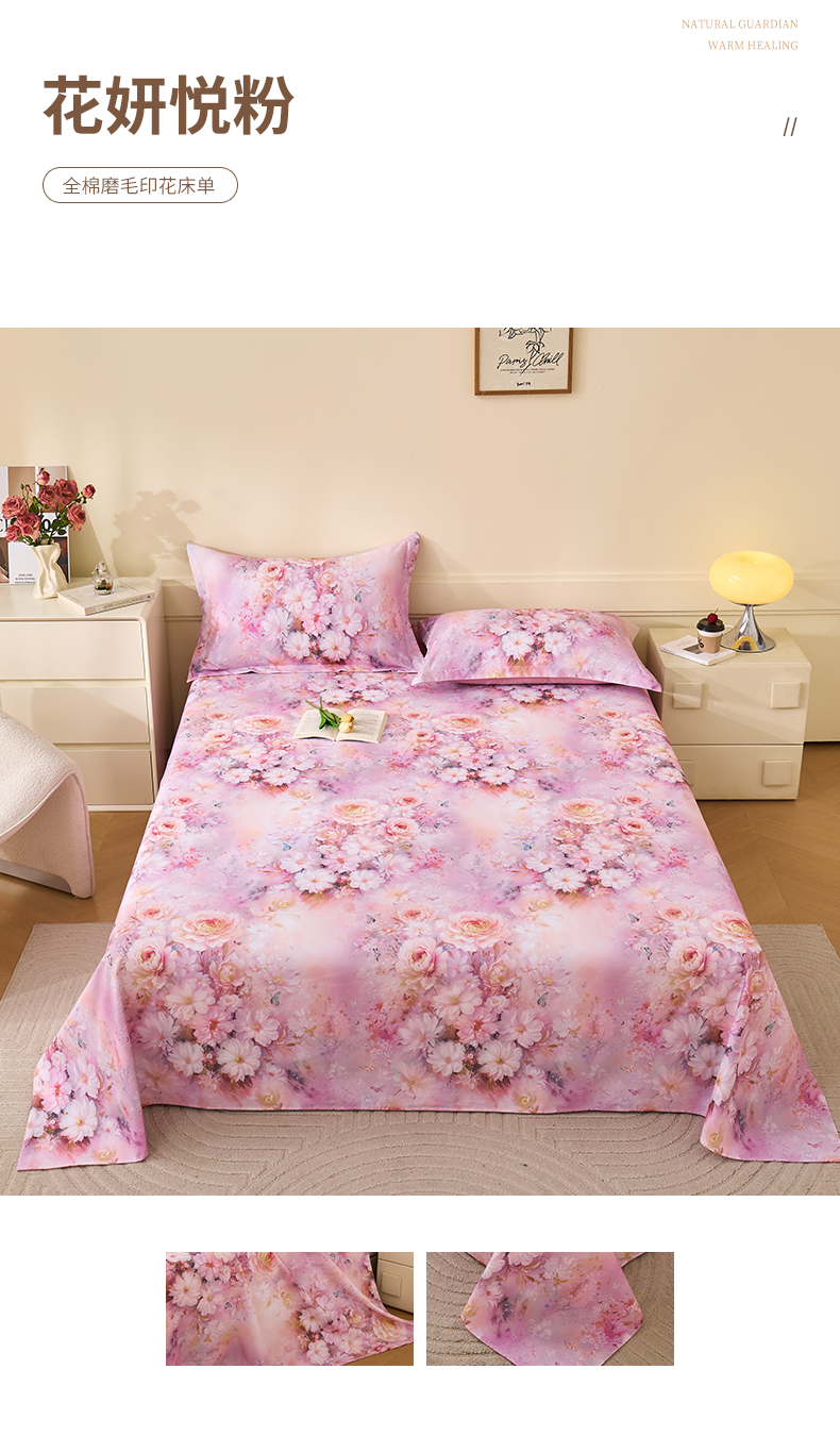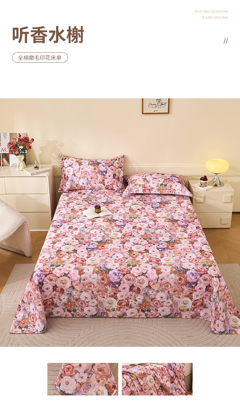 元元家居(元元被业) 2025秋冬新款全棉纯棉磨毛印花单床单 玫瑰花绣