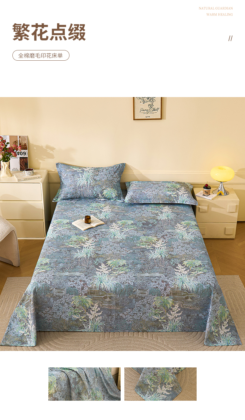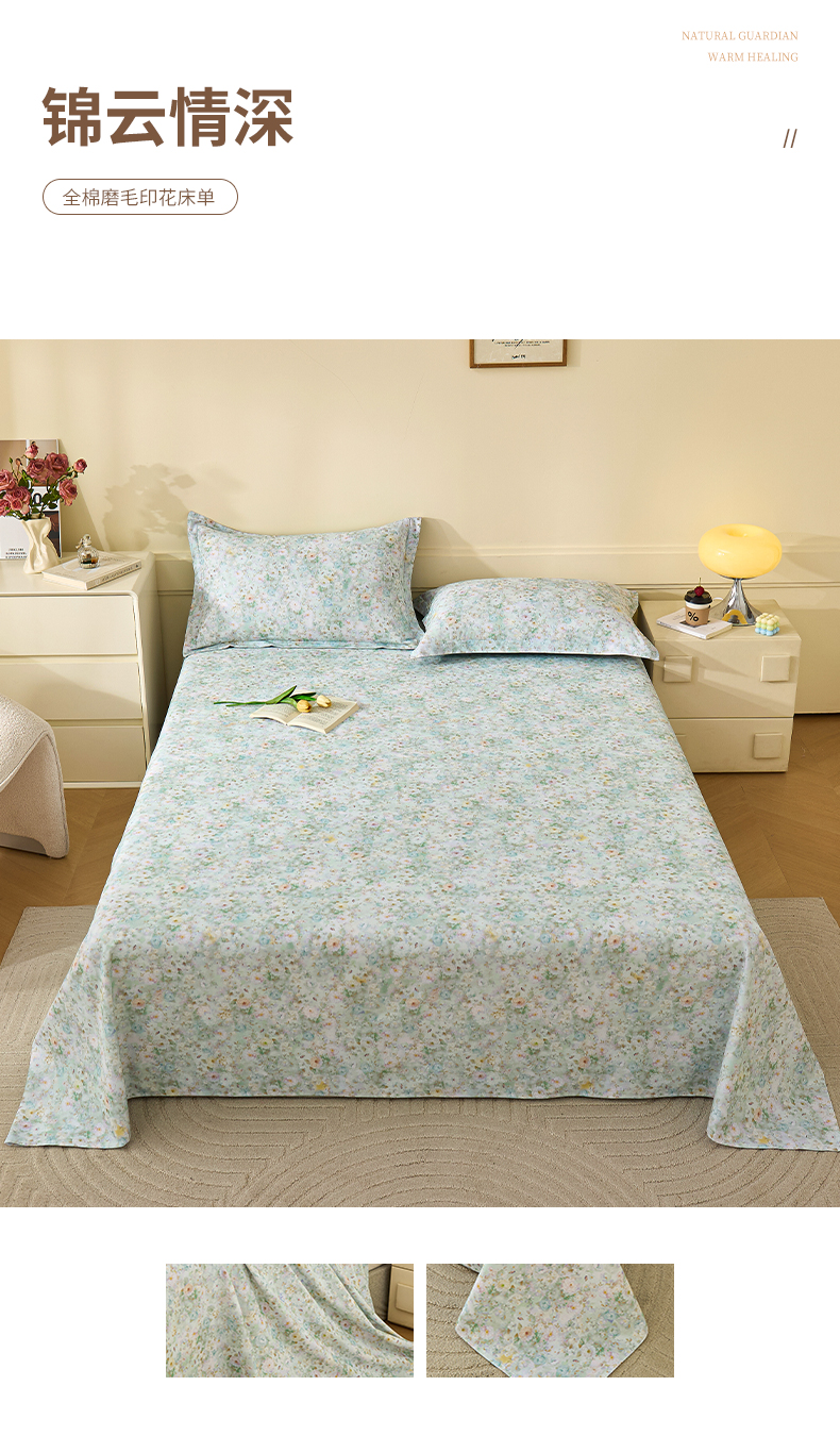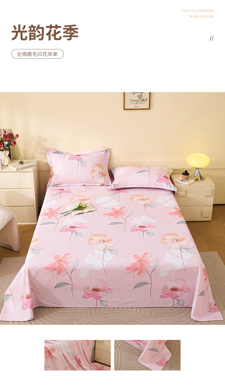 元元家居(元元被业) 2025秋冬新款全棉纯棉磨毛印花单床单 玫瑰花绣