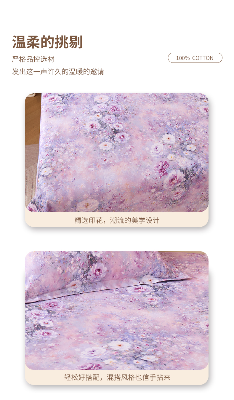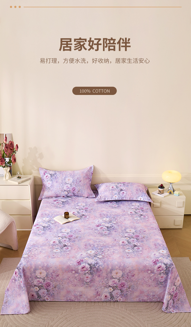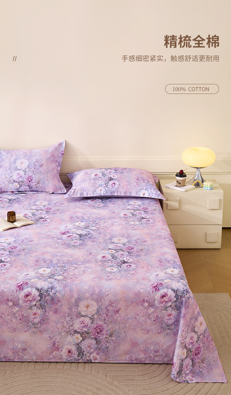 商品名称:元元家居(元元被业) 2025秋冬新款全棉纯棉磨毛印花单床单 玫瑰花绣