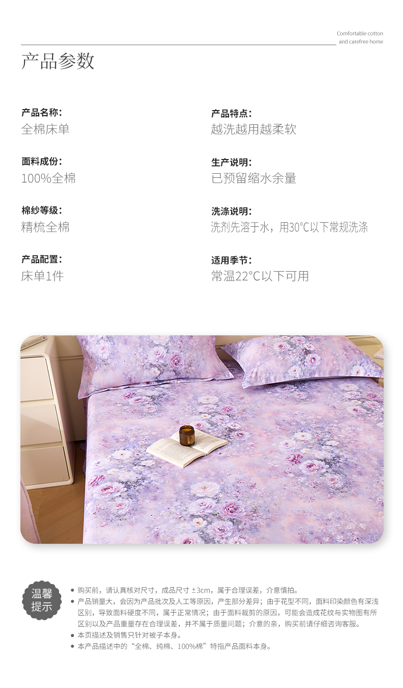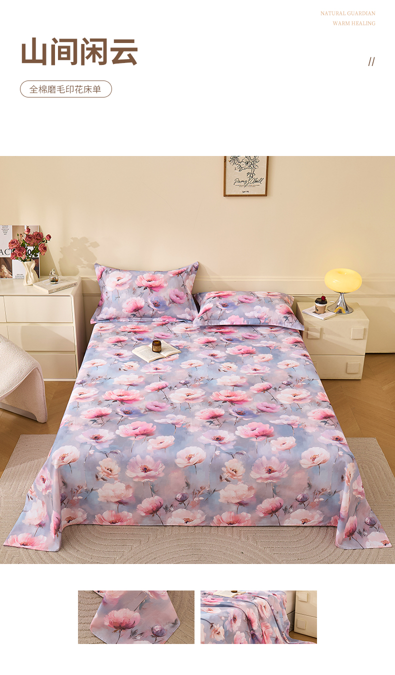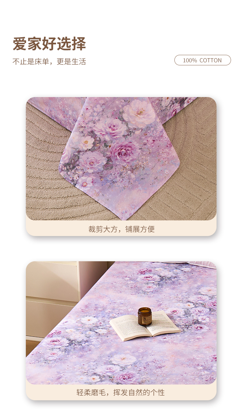 商品名称:元元家居(元元被业) 2025秋冬新款全棉纯棉磨毛印花单床单 玫瑰花绣