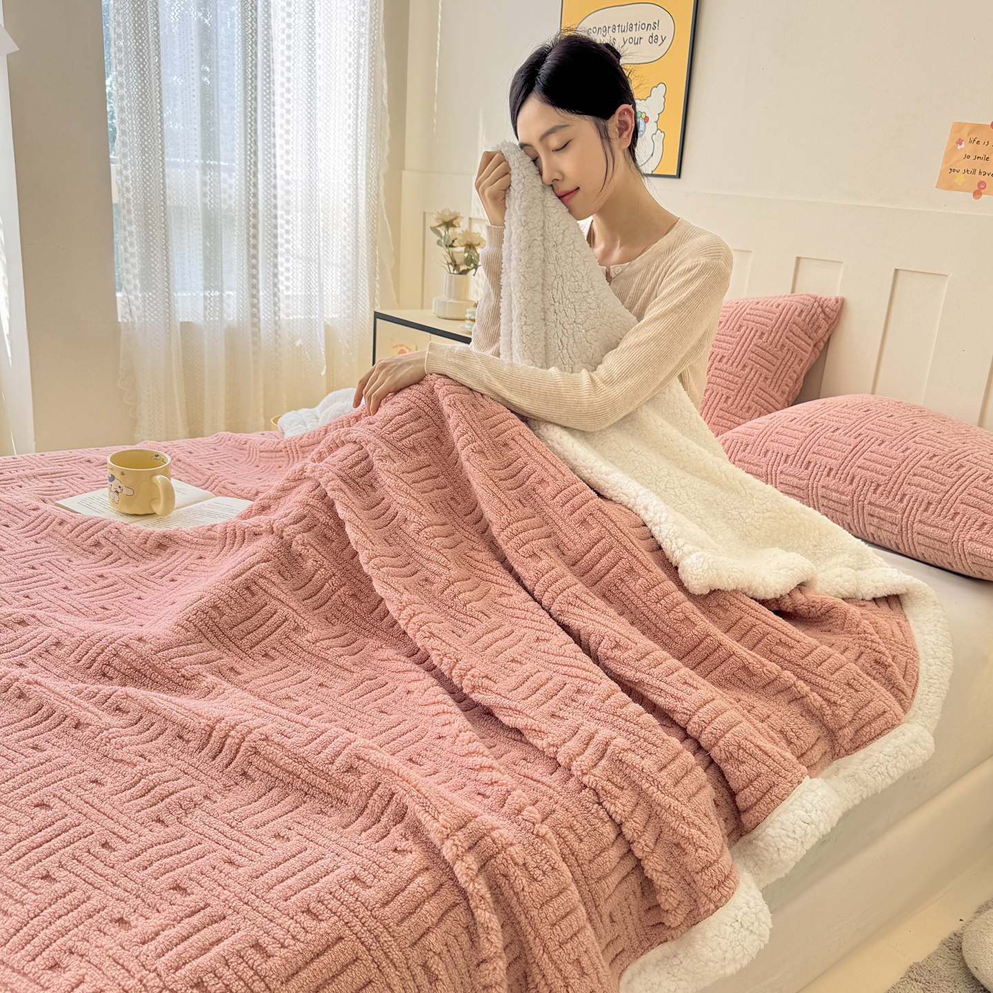 牛魔王家居 2025新款华夫格提花双面绒毛毯羊羔绒毯子外贸跨境专供 毛毯绒毯系列-豆沙红