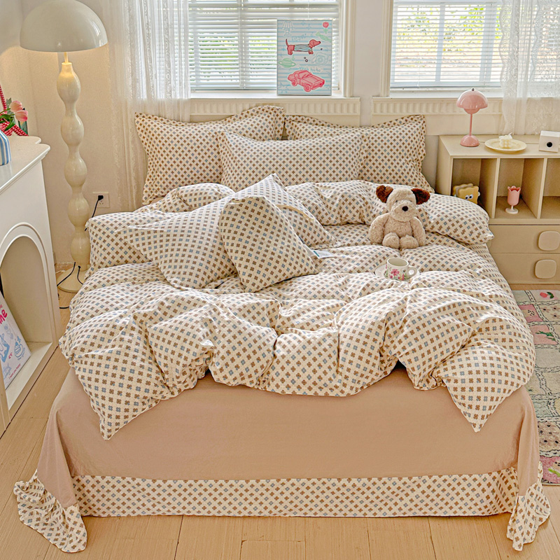 (总) 梦莱斯 2026新款小清新可爱风纯棉花边床盖四件套,灰格心,漫野,午后时光,小玫瑰,紫菱花笺,小象,屿花,浅棠絮语,彩色波点,彩色小草莓,粉蔷薇,杏野繁花,狗狗家族,蝴蝶结,可爱狗狗,可爱胡萝卜,蓝色狗狗,雾紫汀兰,蓝色梦铃,漫花蝶舞,米色南瓜,熊熊乐园,紫色小兔