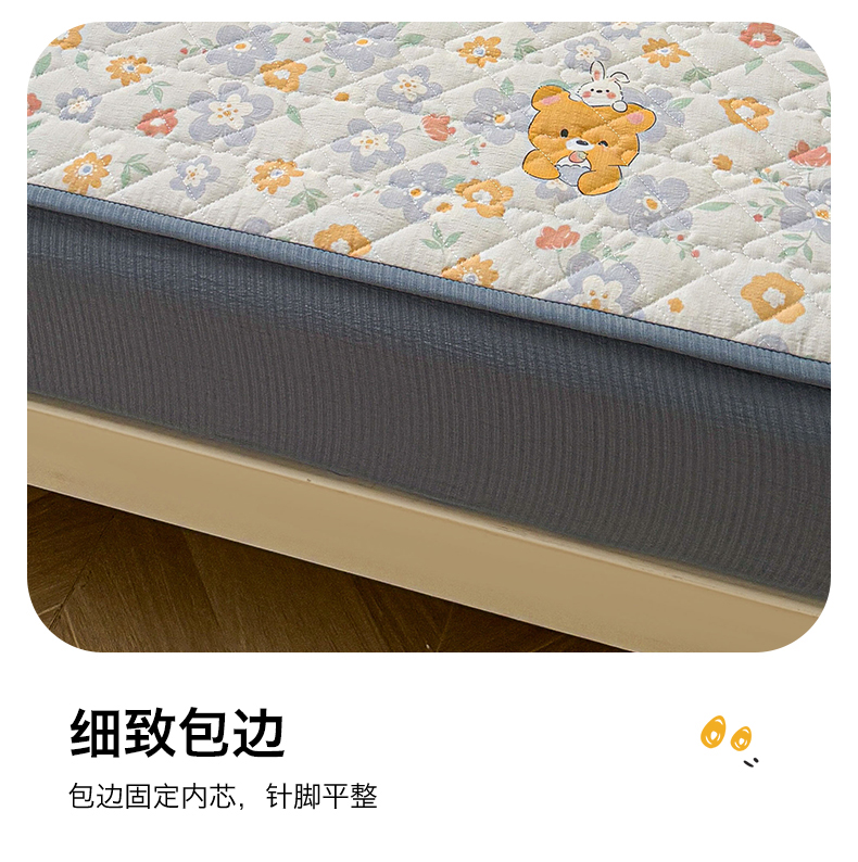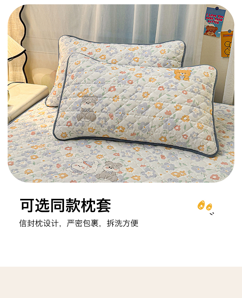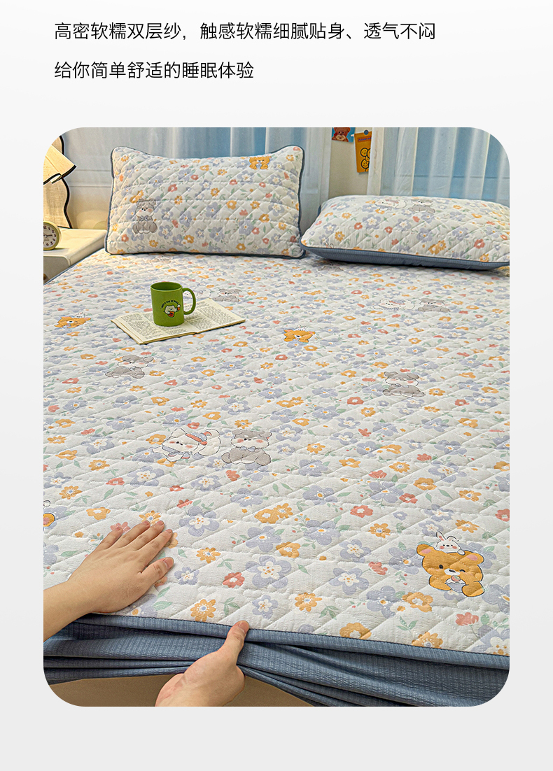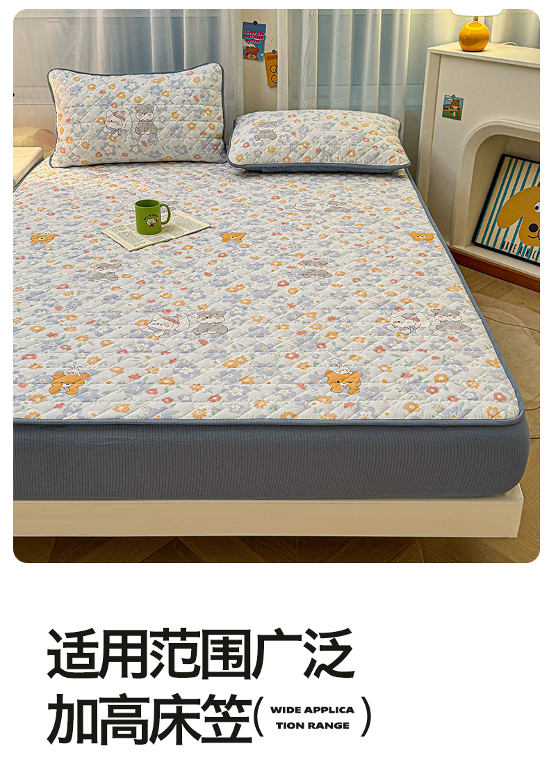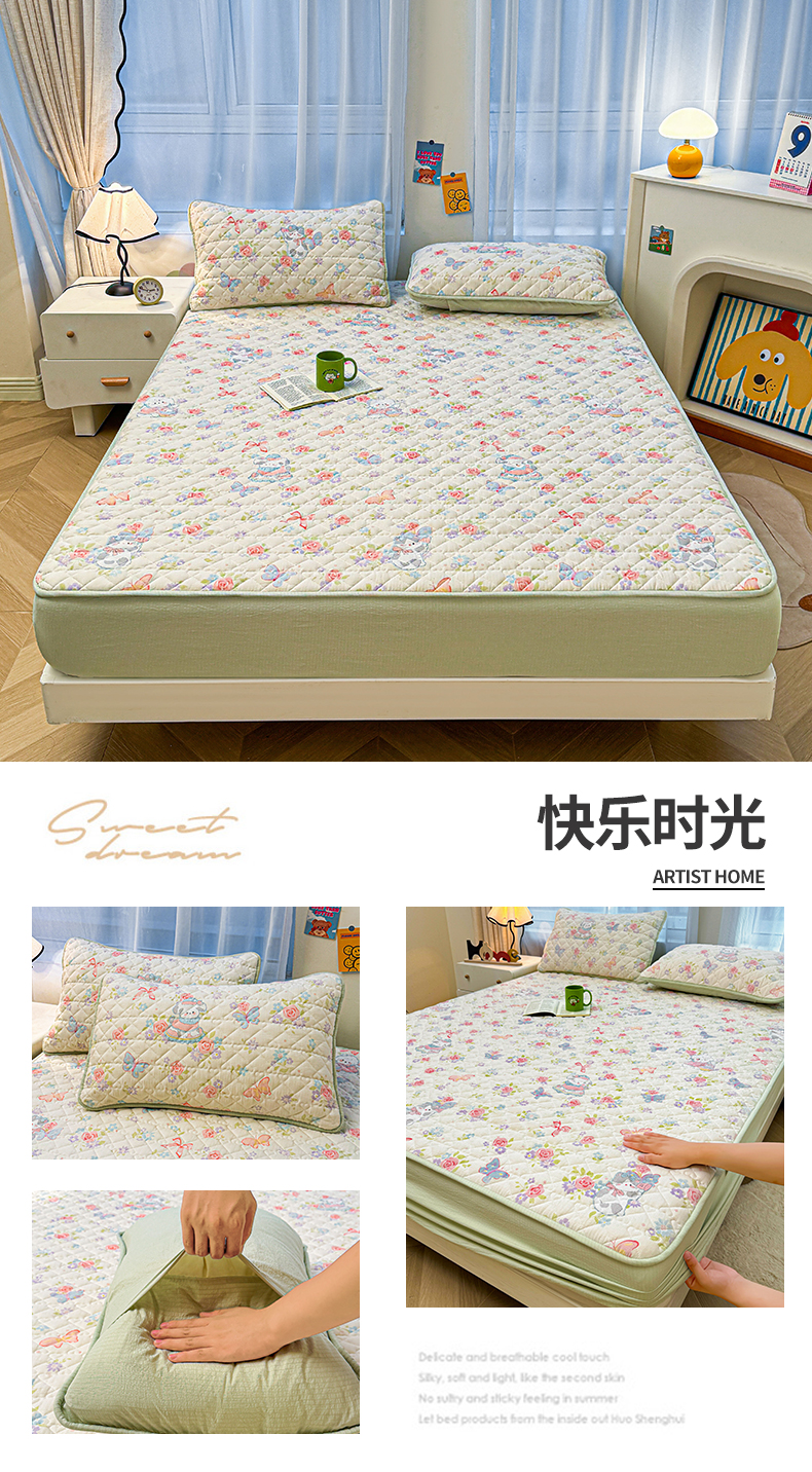 (总)雯豆家纺 2025新款复古风皱皱棉印花夹棉床笠三件套加厚床垫保护套,小南瓜,春日小狗,初夏,浪漫花语,爱尔蓝,初心,蝴蝶结小猫,花小愈,可爱TK,快乐萌宝,快乐时光,毛球团团,蘑菇仙子,奶萌小狗,小苍兰