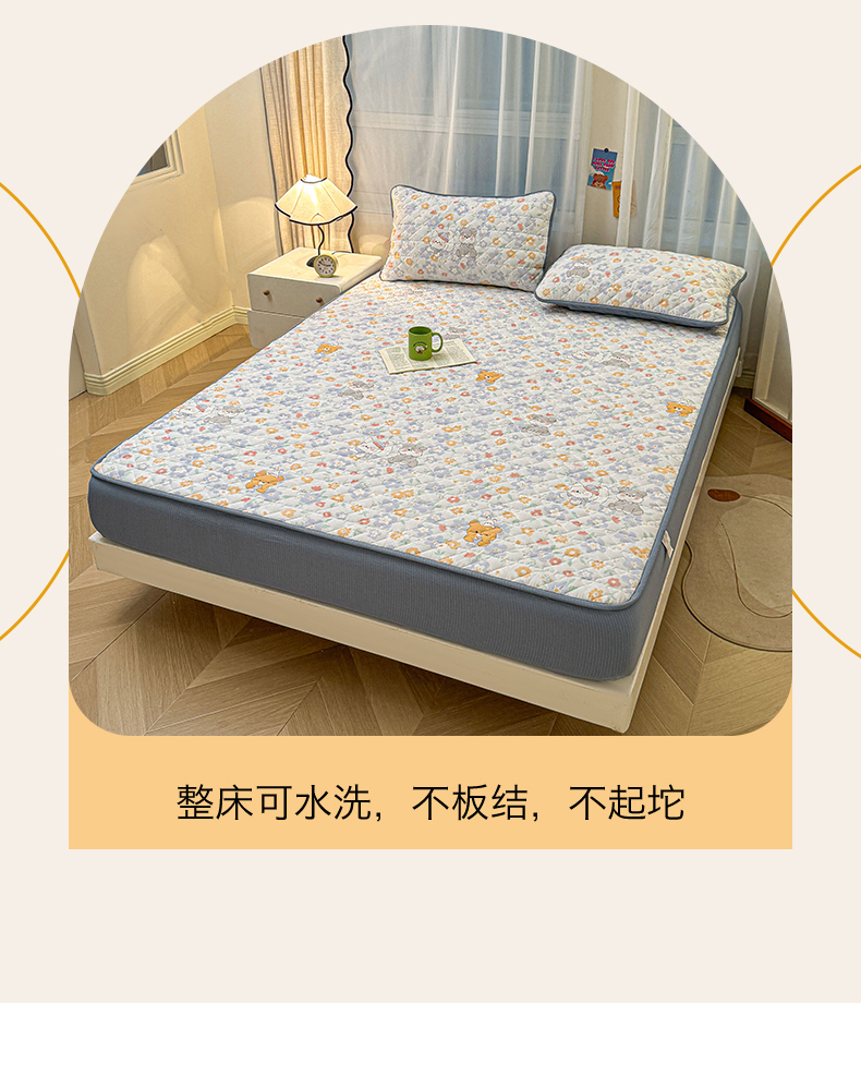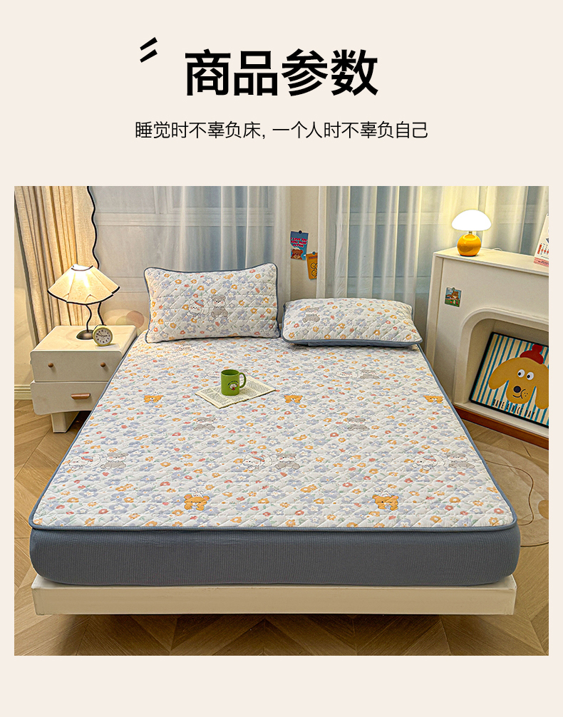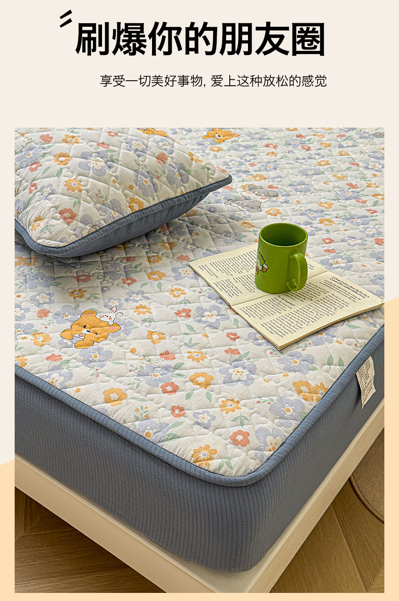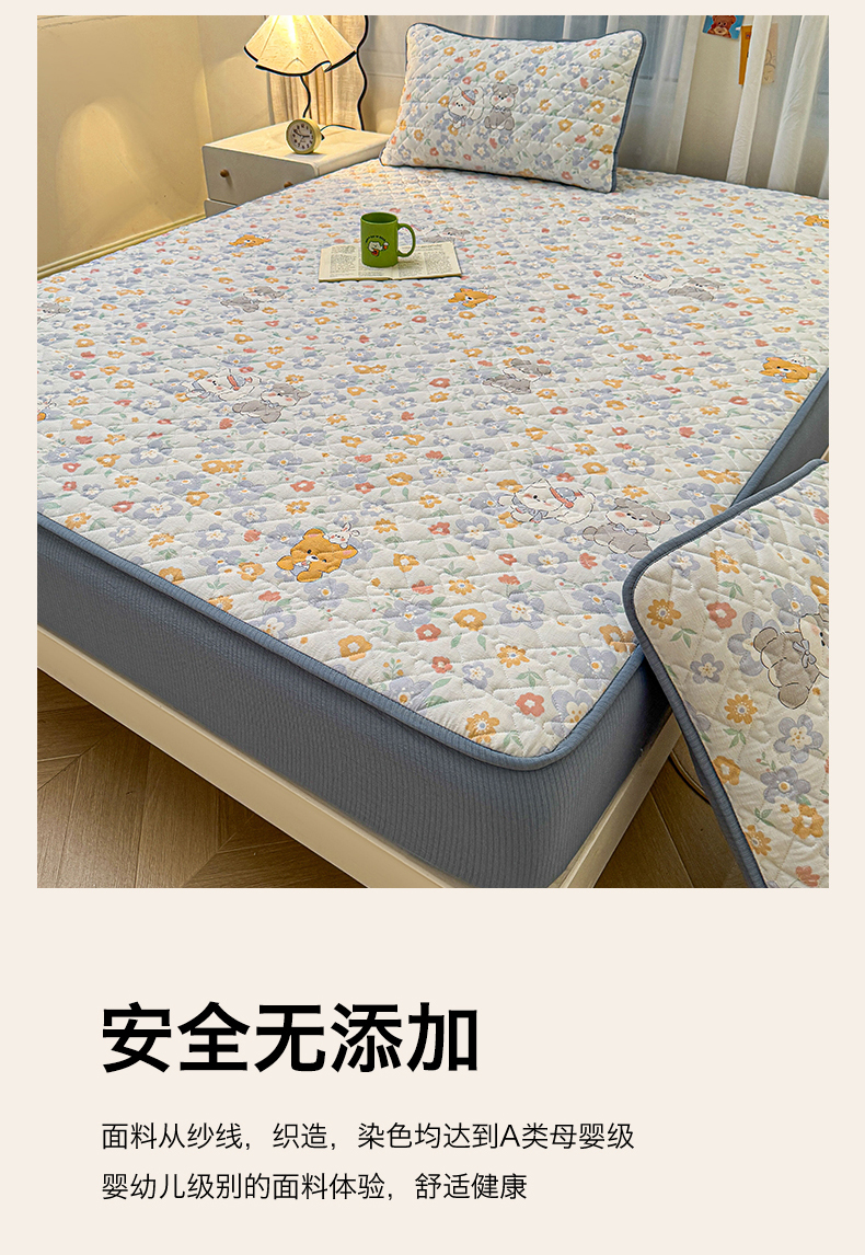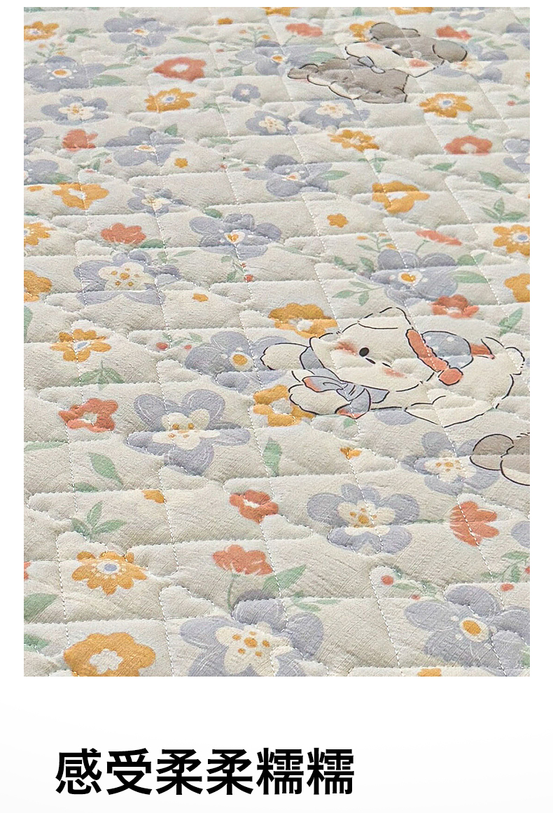 (总)雯豆家纺 2025新款复古风皱皱棉印花夹棉床笠三件套加厚床垫保护套,小南瓜,春日小狗,初夏,浪漫花语,爱尔蓝,初心,蝴蝶结小猫,花小愈,可爱TK,快乐萌宝,快乐时光,毛球团团,蘑菇仙子,奶萌小狗,小苍兰