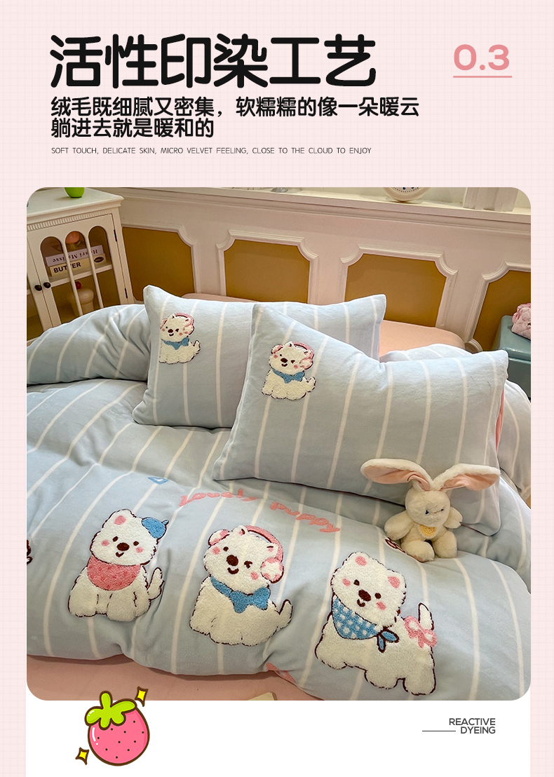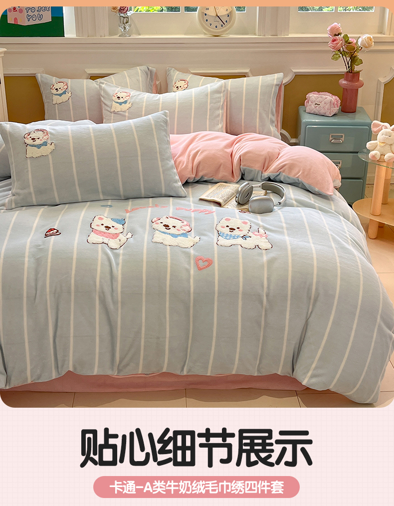 星座家纺 2025新款A类卡通200g牛奶绒毛巾绣四件套 萌汪乐园
