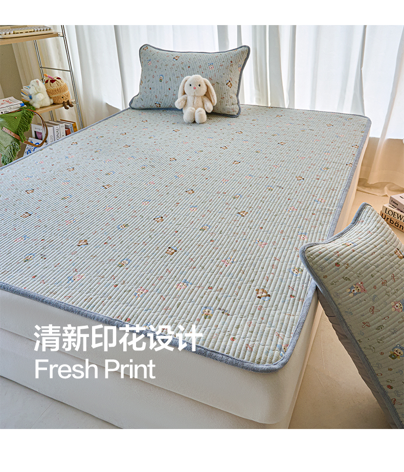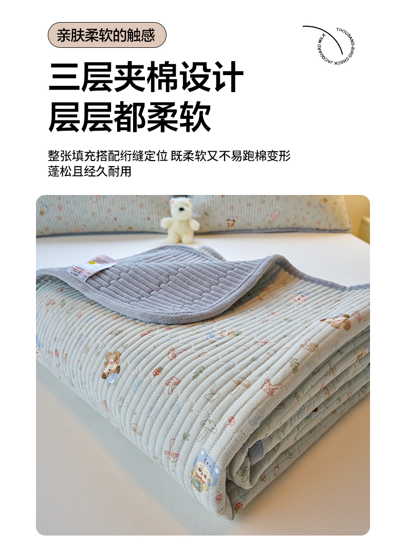 小叮当家纺仓储工厂店 2025新款棉加绒床垫一面全棉一面牛奶绒床褥垫软床垫床盖四季通用 蘑菇小镇(A棉B绒)