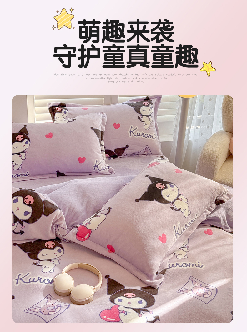 名兮家居 2025新款经典奥特曼-三丽鸥加厚牛奶绒单被套 紫色库洛米