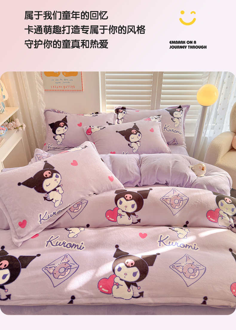 当前位置: 91家纺网 > 商品网购 > 床上用品 > 被套 > 名兮家居 2025新款经典奥特曼-三丽鸥加厚牛奶绒单被套 紫色库洛米