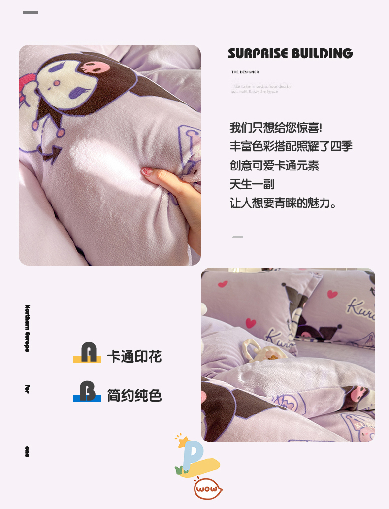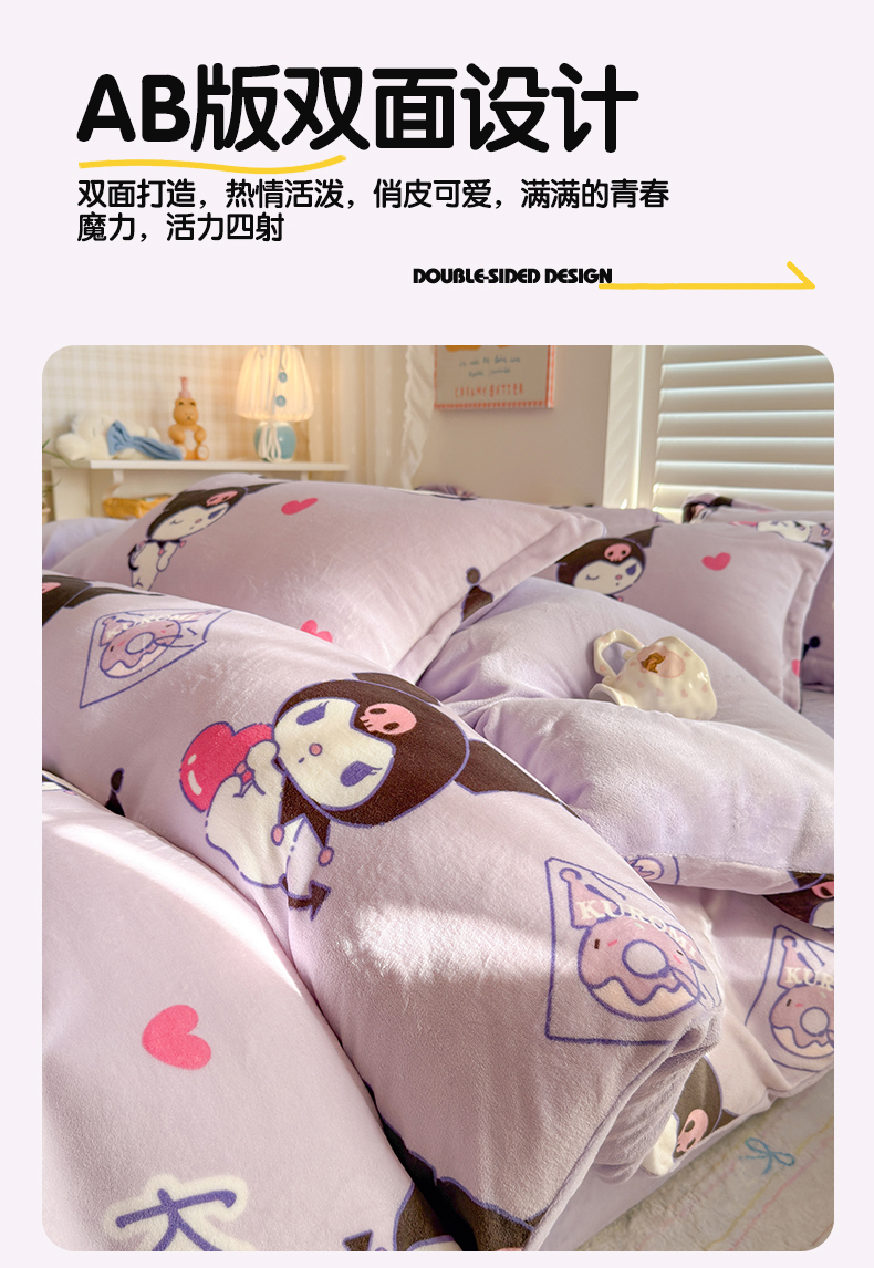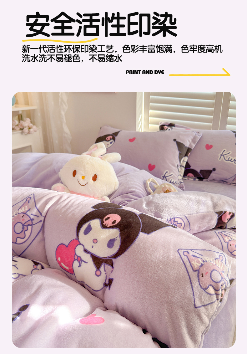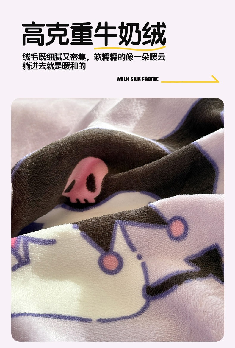 • 91家纺网 家纺一手货源 找家纺 名兮家居 2025新款经典奥特曼-三丽鸥加厚牛奶绒单被套 紫色库洛米