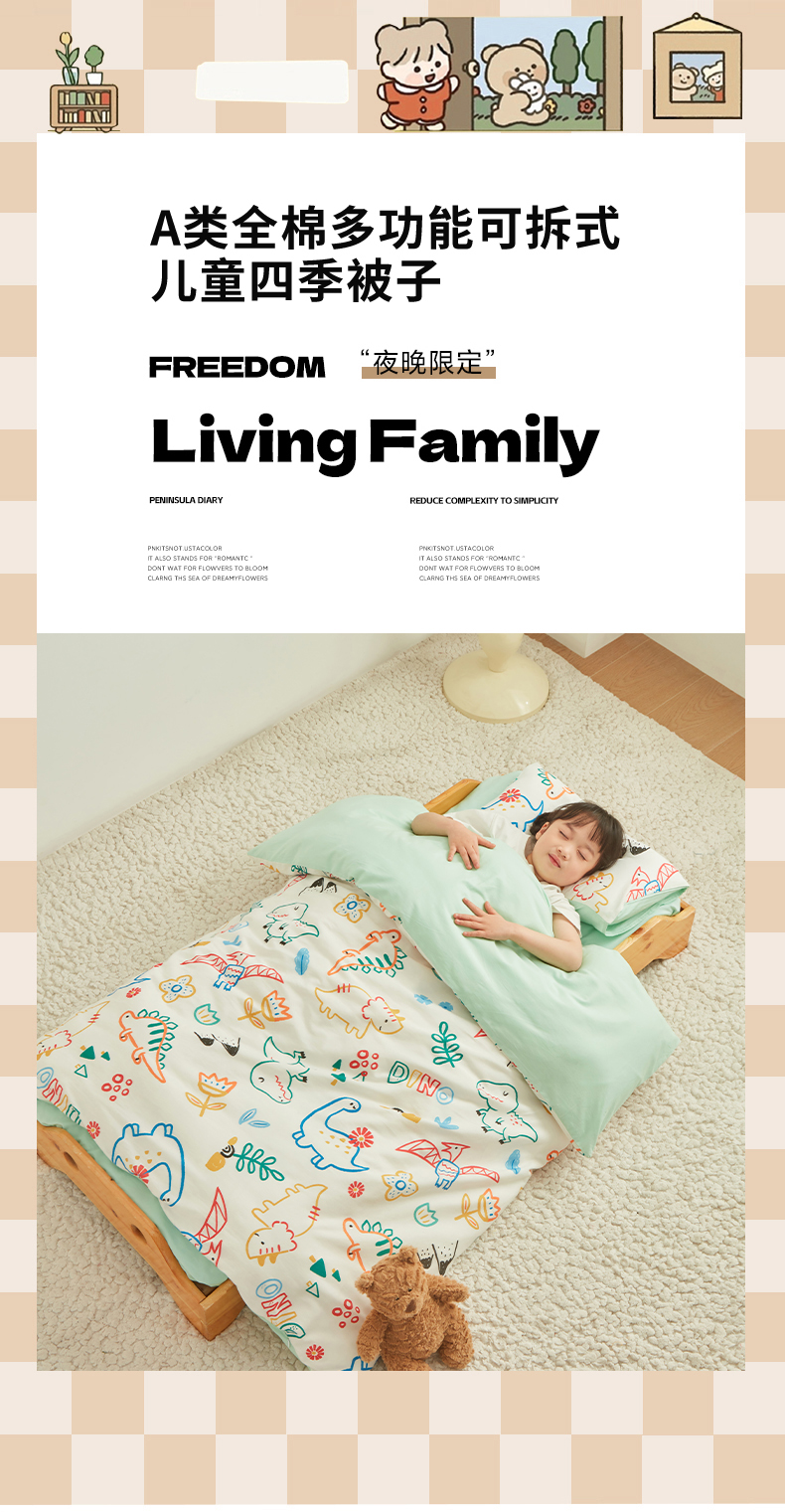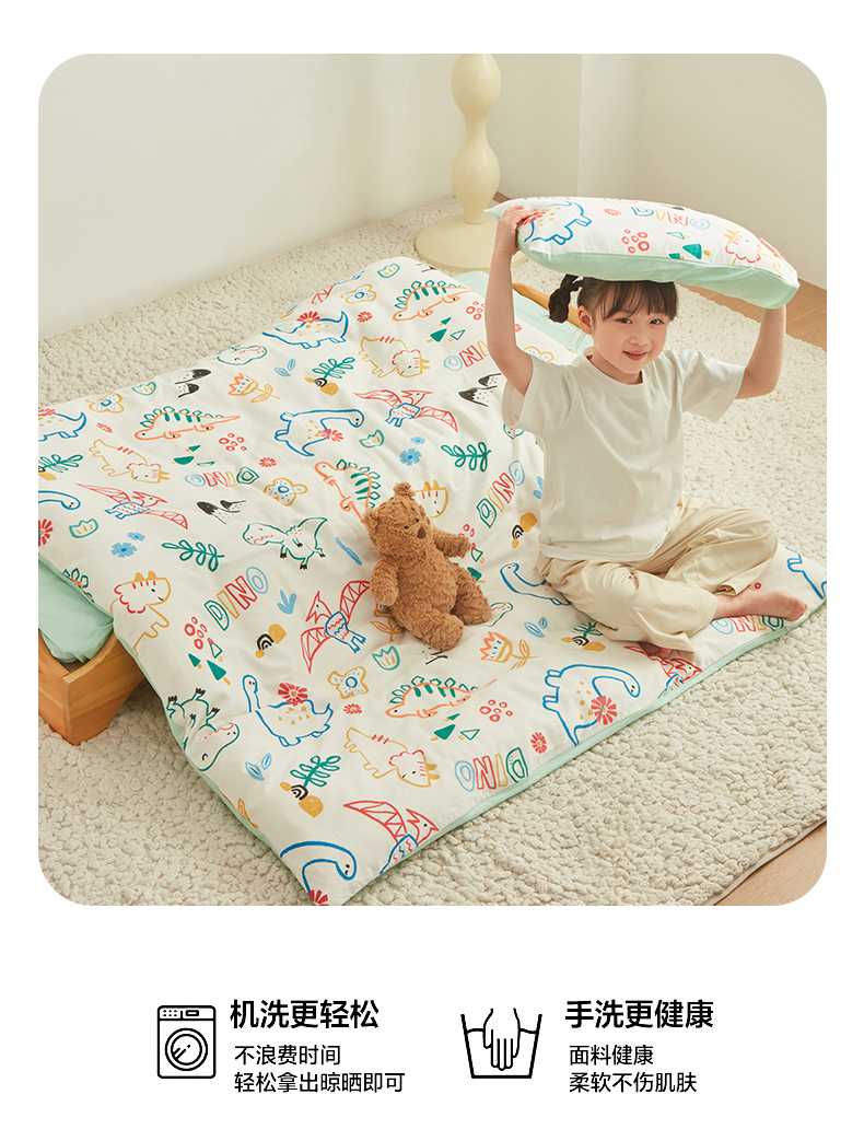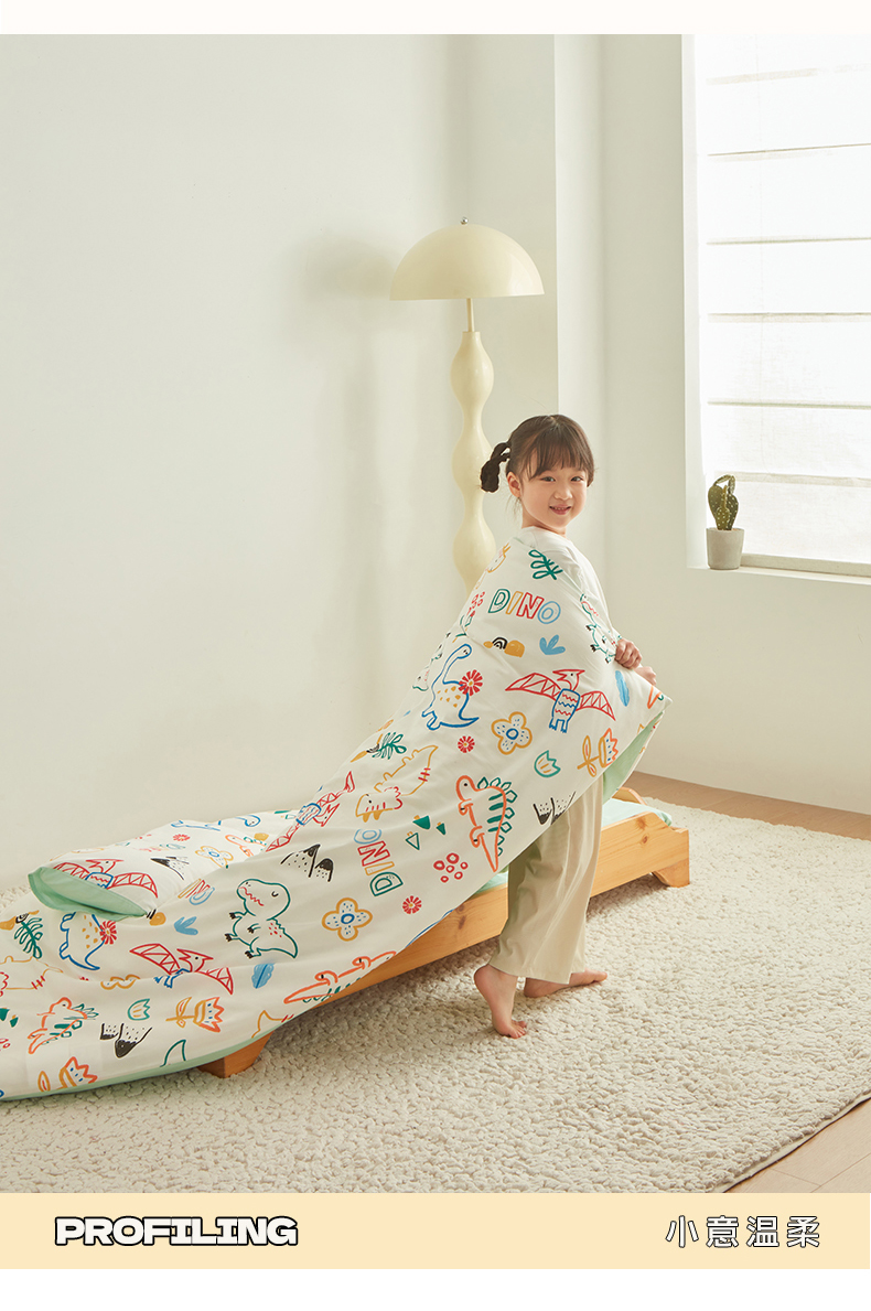 • 91家纺网 家纺一手货源 找家纺 艾佳宝贝 2025新款A类全棉多功能可拆卸儿童盖毯四季被子 好多恐龙