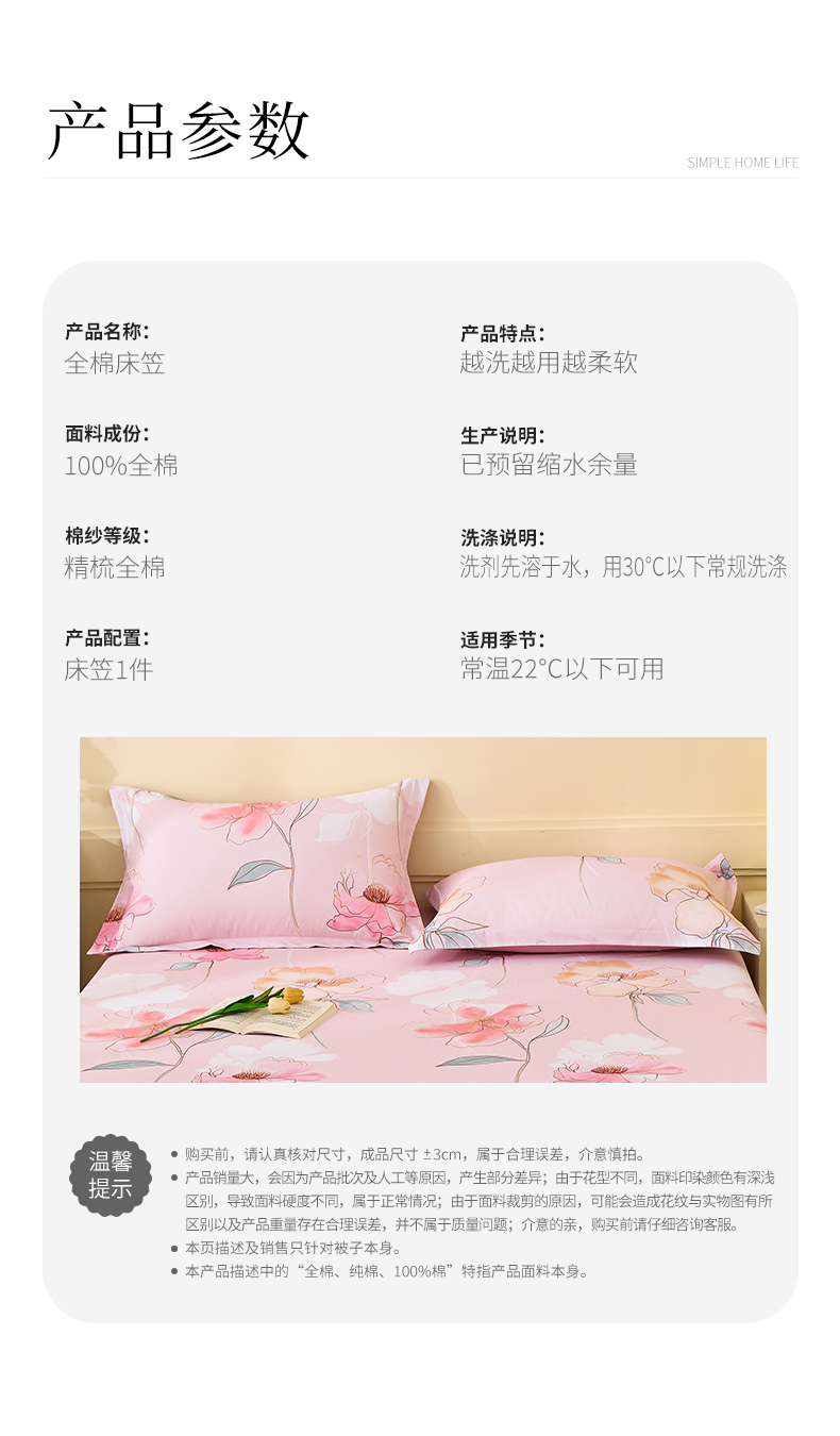 商品名称:元元家居(元元被业) 2025秋冬新款全棉纯棉磨毛印花单床笠 听香水榭