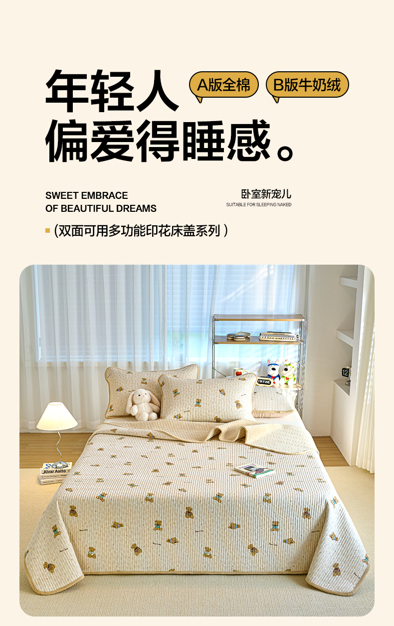 • 91家纺网 家纺一手货源 找家纺 小叮当家纺仓储工厂店 2025新款A版全棉B版牛奶绒床盖系列单床盖床盖单件 趴趴熊(A棉B绒)