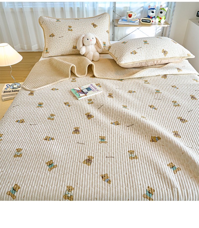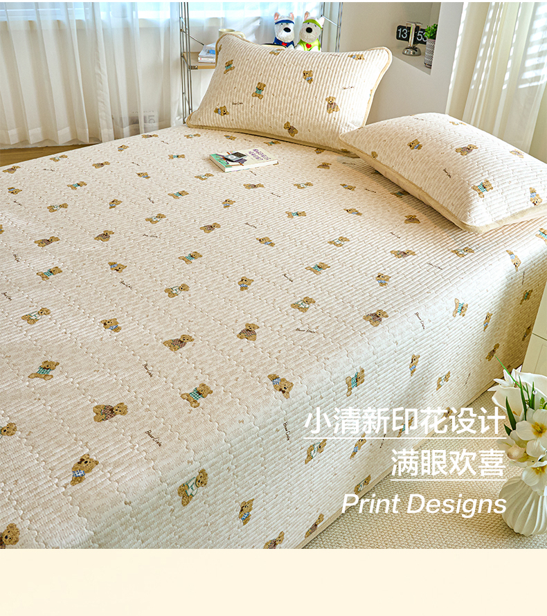 小叮当家纺仓储工厂店 2025新款A版全棉B版牛奶绒床盖系列单床盖床盖单件 趴趴熊(A棉B绒)