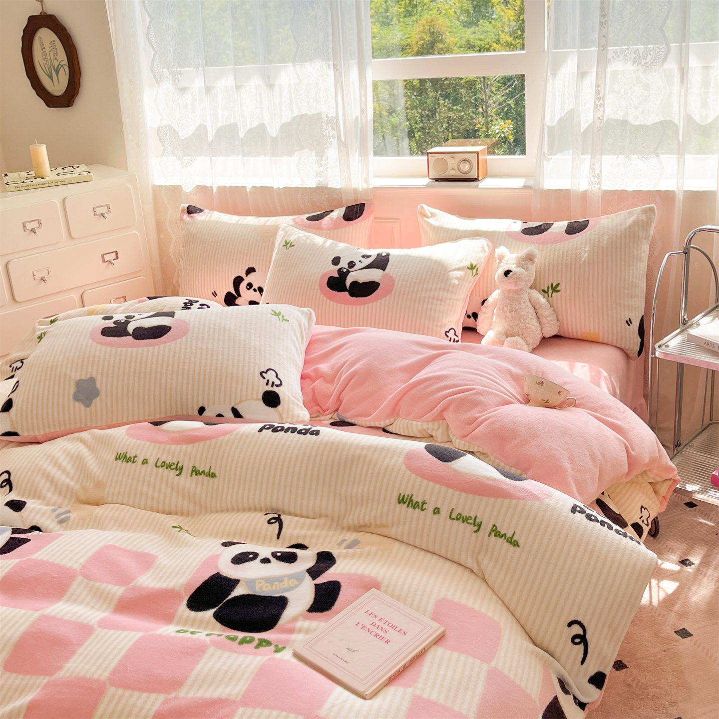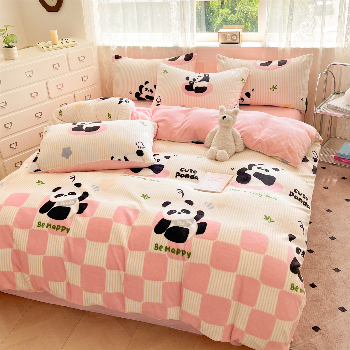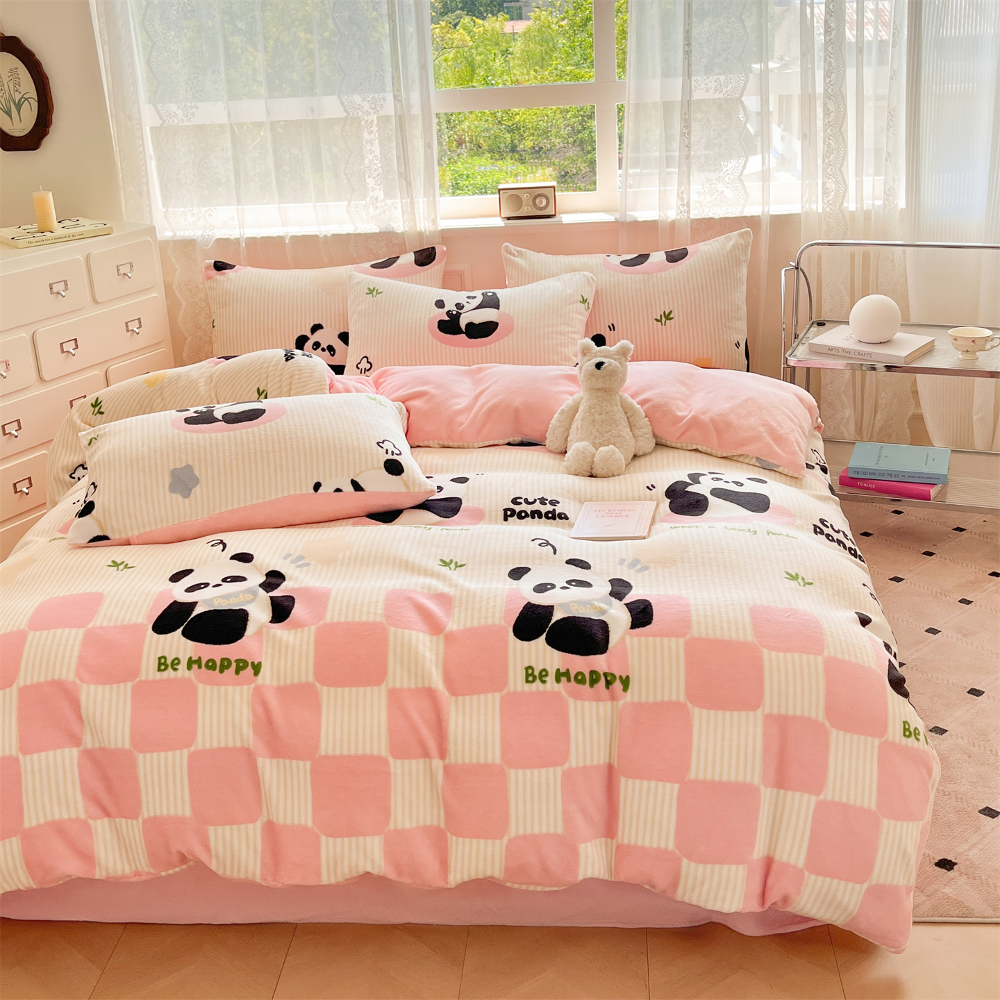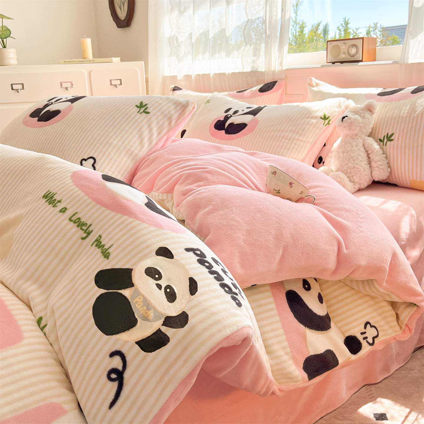 欧尚家纺 2025新款跑量牛奶绒四件套 小熊猫粉