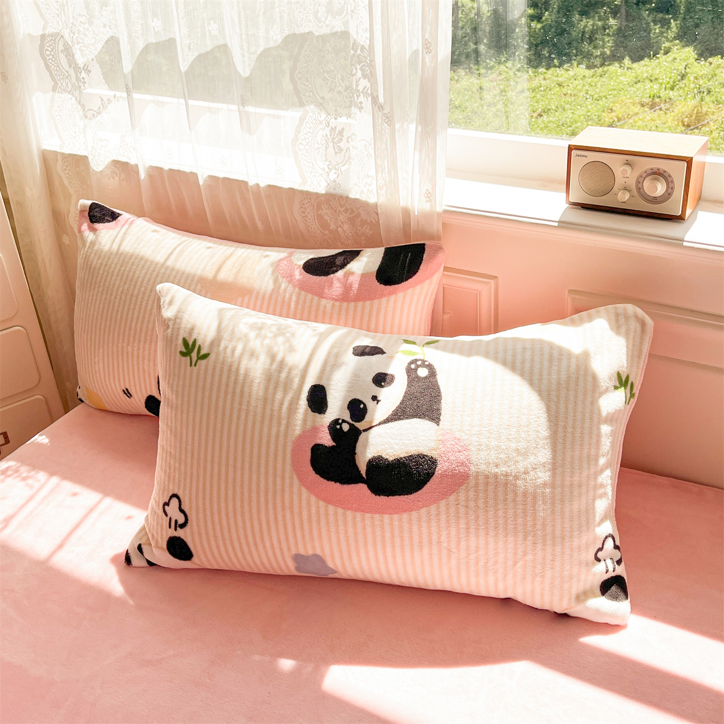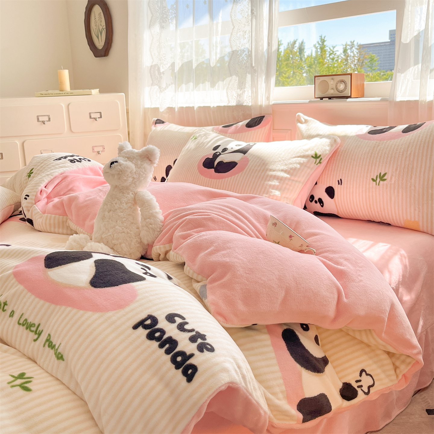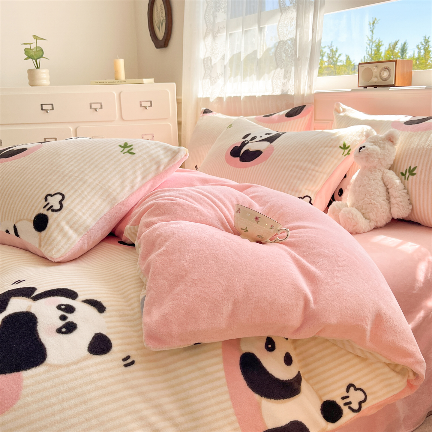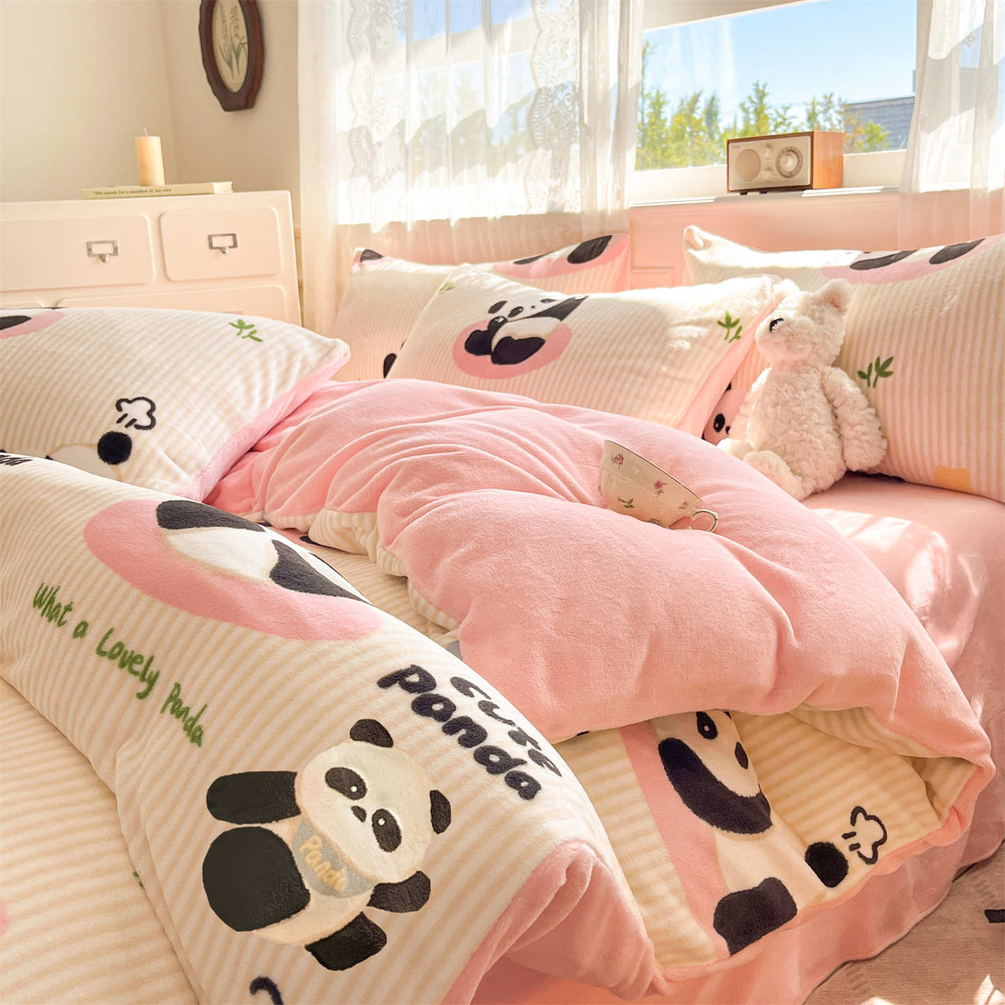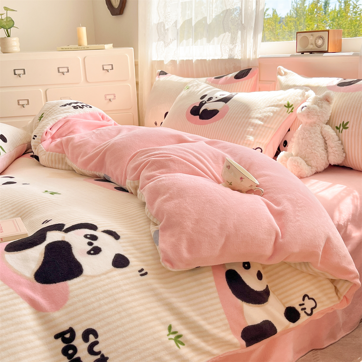 欧尚家纺 2025新款跑量牛奶绒四件套 小熊猫粉