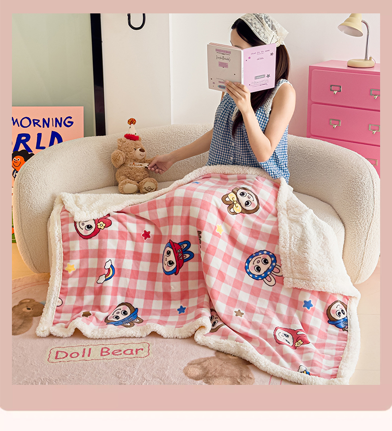 艾特你 2025新款ins羊羔绒牛奶绒可被套休闲毯单被套-毯子图 格子布布