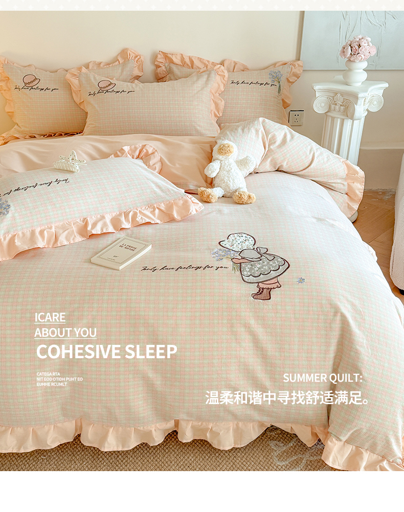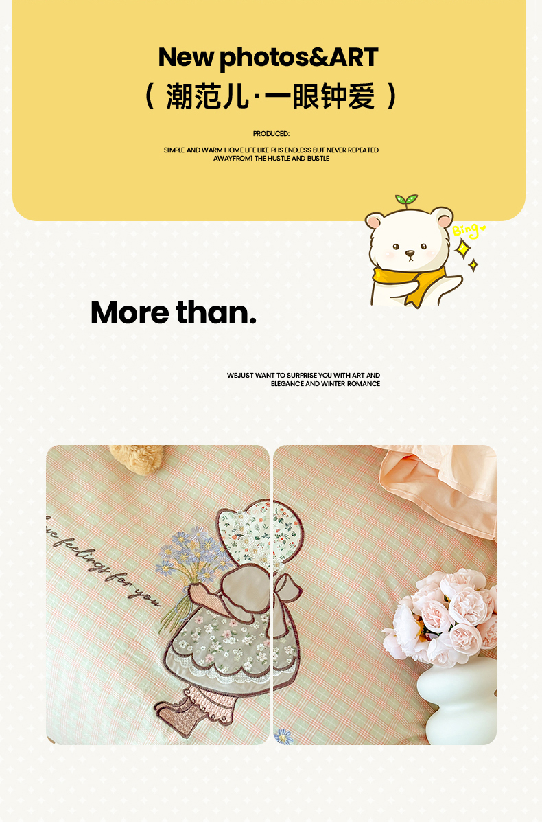 当前位置: 91家纺网 > 商品网购 > 床品套件 > 四件套 > 水洗棉四件套 > 优迈 2025秋冬新款色织水洗棉贴布花边款四件套 童趣-浅玉