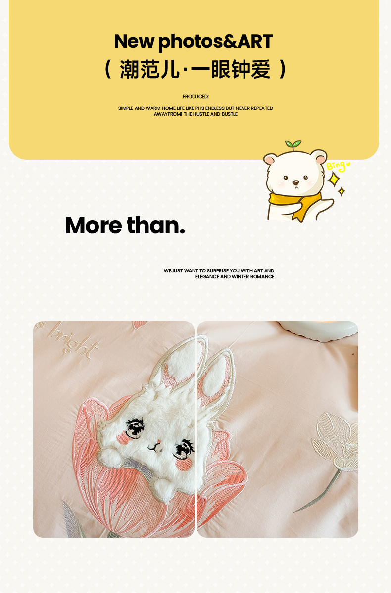 当前位置: 91家纺网 > 商品网购 > 床品套件 > 四件套 > 全棉普通四件套 > 优迈 2025新品全棉加厚水洗棉韩版小清新绣花工艺贴布绣四件套--郁金香小兔 郁金香小兔 浅粉