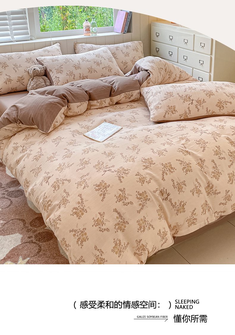 (总)如约 2025新款木棉双层纱印花四件套,小花蔷薇粉,春日来信,朝颜,邂逅,露华浓,草木集黄,写意兰,旧日告白,往事咖,罗格先生兰,小花巧克力棕,小花抹茶绿