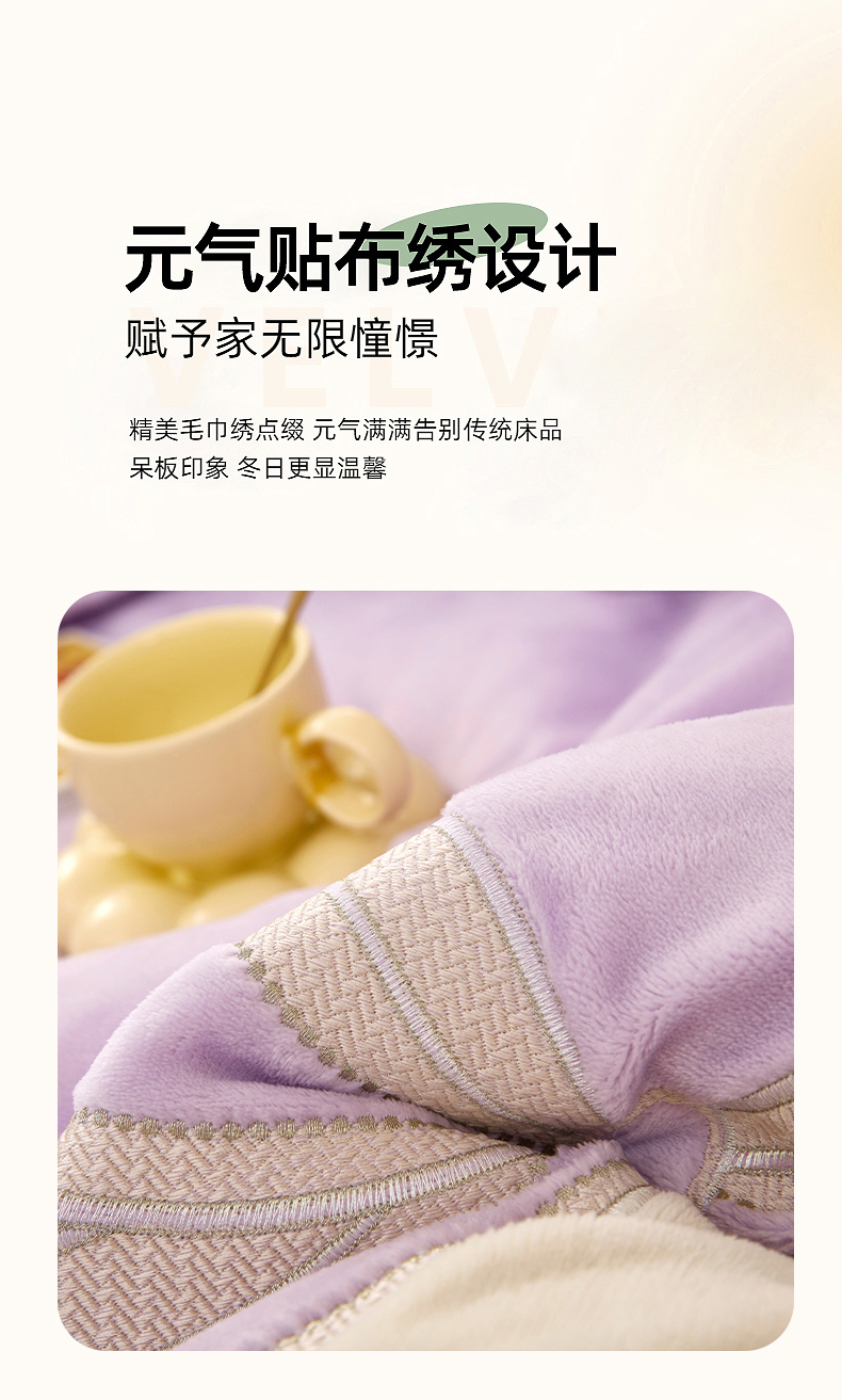 商品名称:卡迪亚家纺 2025新款牛奶绒贴布绣四件套-蝶舞 蝶舞-魅力紫