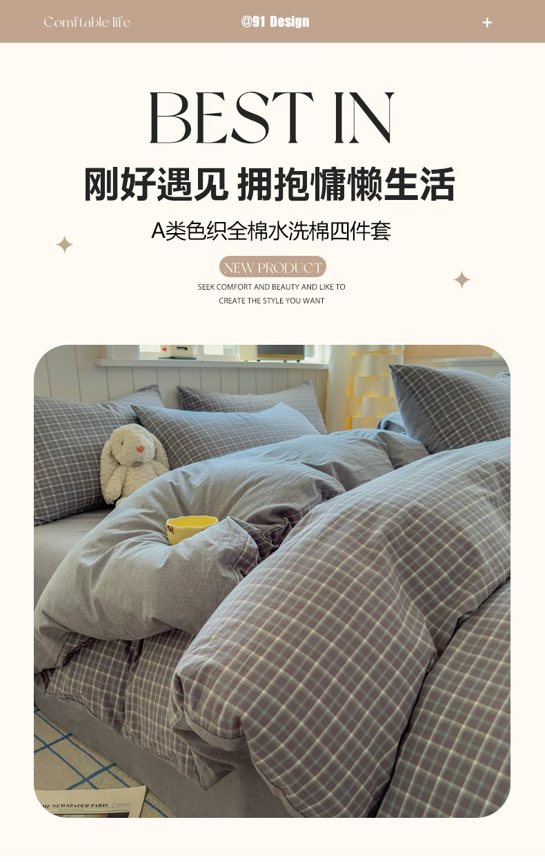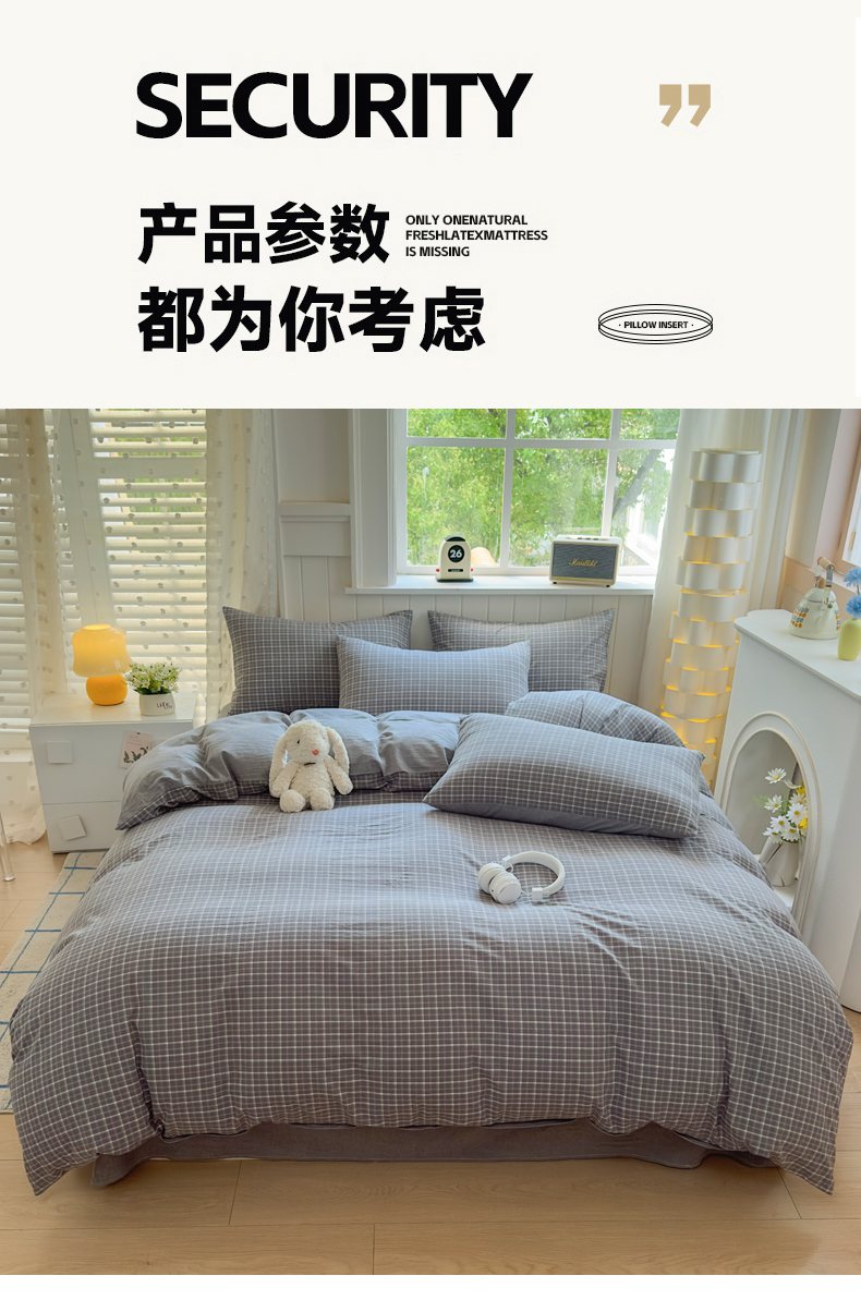当前位置: 91家纺网 > 商品网购 > 床品套件 > 四件套 > 全棉普通四件套 > 宜家坊 2025新款A类全棉色织水洗棉四件套纯棉格子纯色被套学生宿舍三件套定制定做 米娜-绿灰