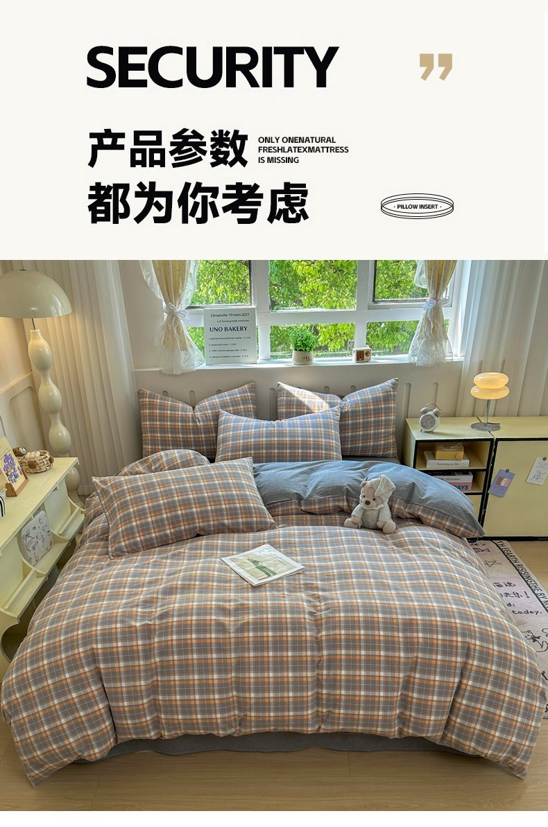 当前位置: 91家纺网 > 商品网购 > 床品套件 > 四件套 > 全棉普通四件套 > 宜家坊 2025新款A类全棉色织水洗棉四件套纯棉格子纯色被套学生宿舍三件套定制定做 映像格-橙灰