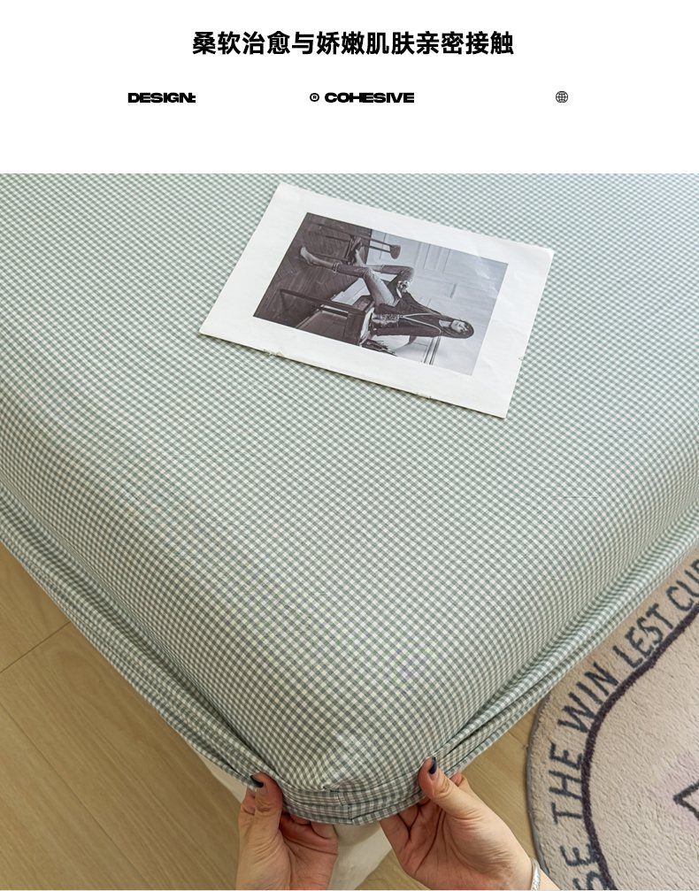 • 91家纺网 家纺一手货源 找家纺 宜家坊 2025新款A类色织全棉水洗棉床单单件纯棉格子纯色学生宿舍定制定做 密格-草绿