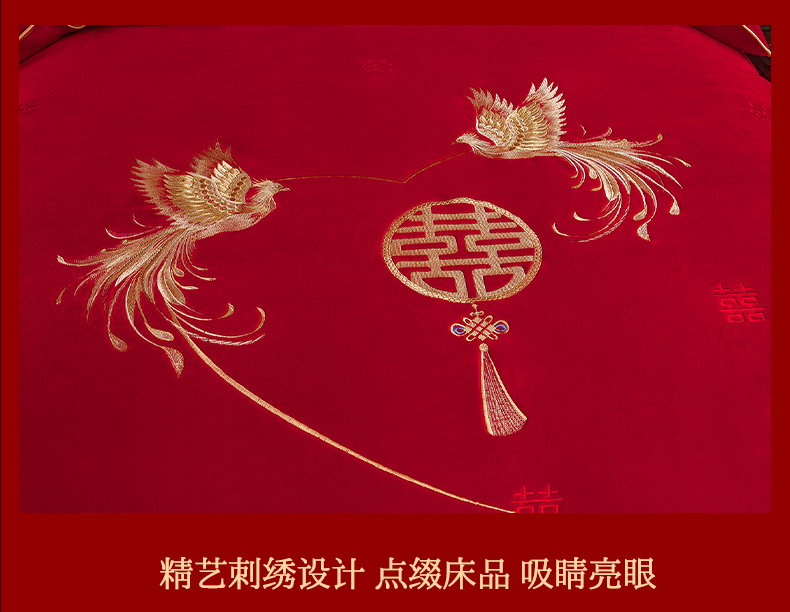 (总)居尚家纺 2025新款牛奶绒大红婚庆刺绣四件套,大喜之日,浪漫之约,龙凤呈祥,喜爱,心生欢喜,幸福满满,永恒爱恋