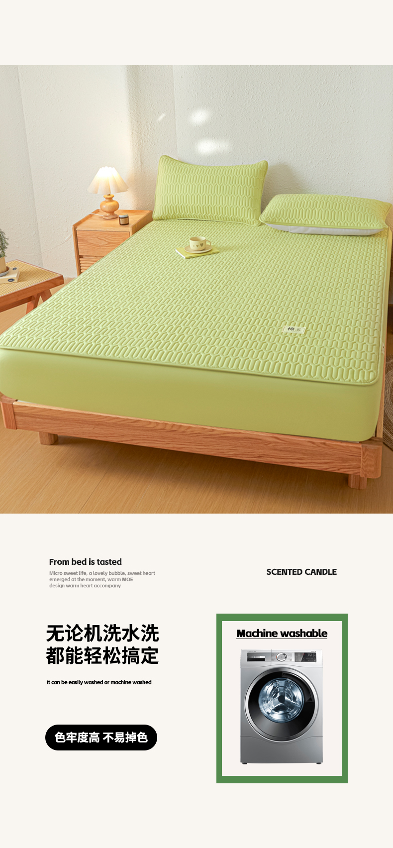 商品名称:曼陀罗 2025新款A类新疆棉花夹棉防水床笠 小竹纹-果绿