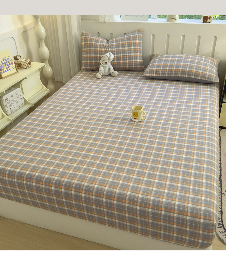 宜家坊 2025新款A类色织全棉水洗棉床笠单件纯棉格子纯色学生宿舍定制定做 映像格-橙灰