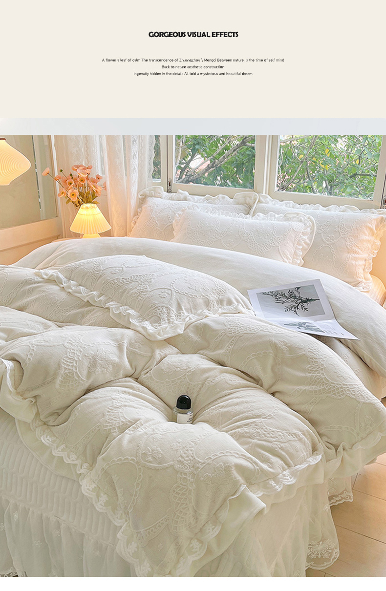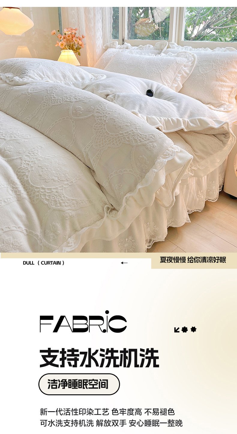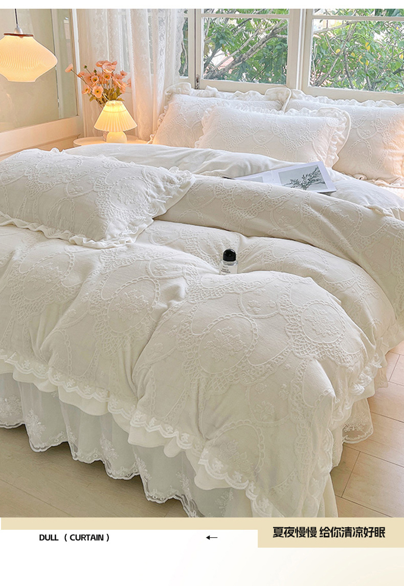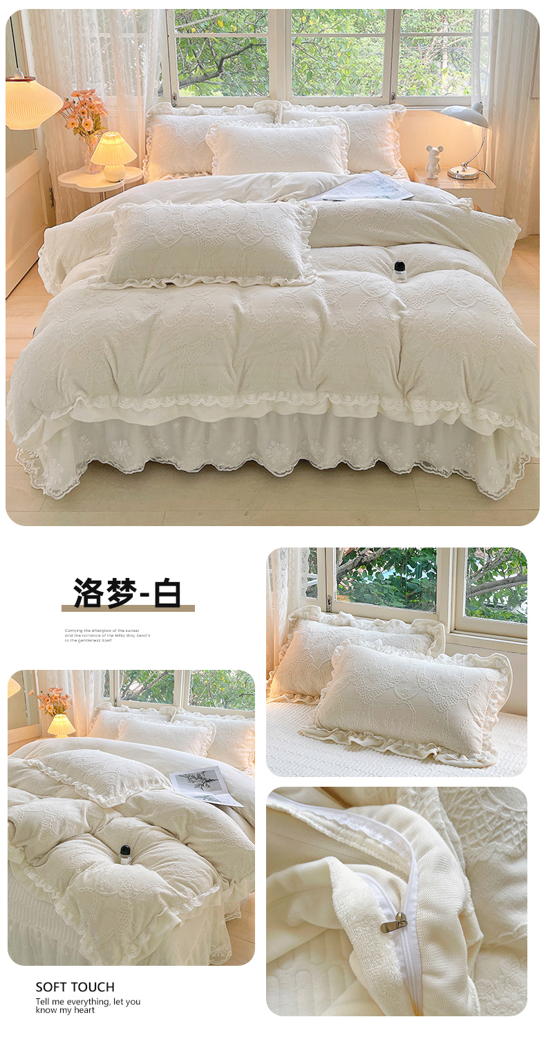 梦之星 2025新款牛奶绒雕花床盖款床单款四件套 洛梦-白