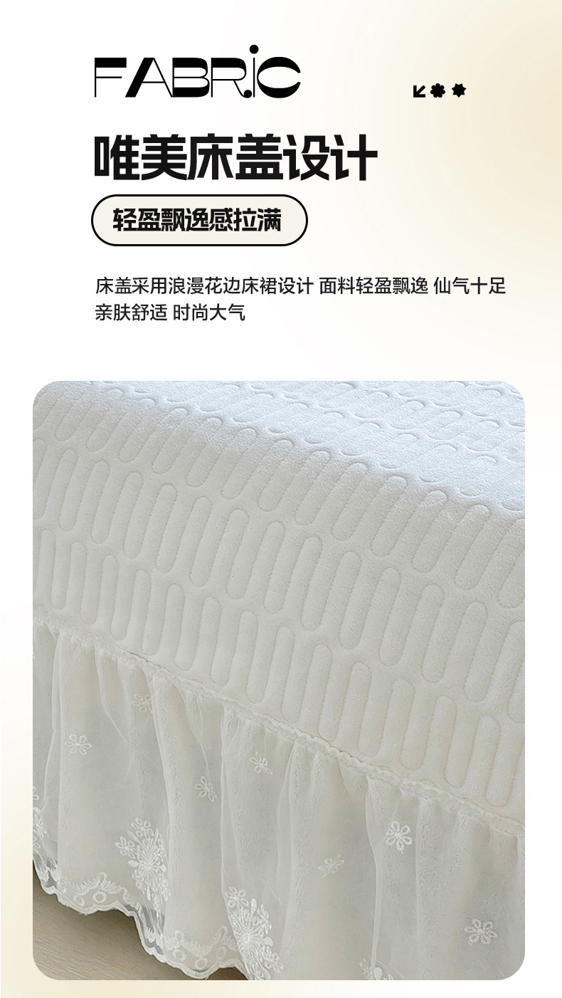 商品名称:梦之星 2025新款牛奶绒雕花床盖款床单款四件套 洛梦-白